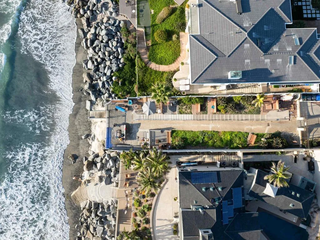 Custom Coastal Oasis is just two blocks from your private beach access and is available to Terramar residents for $150 per year. Settling into your one-of-a-kind, custom-built, single-level home completed in 2022 will be a breeze! Set on a spacious 10,100 sq. ft. lot, this fully reimagined 3-bedroom, 2.5-bathroom home offers 2,100 sq. ft. of beautifully curated living space. Stepping inside, you are greeted by a beautiful custom barrel-beadboard ceiling and an airy, open-concept layout filled with natural light, vaulted ceilings in the main living areas and the primary suite, elegant archways, and thoughtful custom design elements throughout. The chefs kitchen is a true showstopper, featuring a premium Thermador six-burner range, Zephyr stainless hood, dual Elkay sinks (including a prep sink on the quartzite island), custom cabinetry, and oversized drawersperfect for everyday living and coastal entertaining. The large family room includes a cozy modern fireplace and skylights that add warmth and brightness. The powder room and jack/jill bathroom both feature beachy beadboard, colorful tile, and custom cabinetry. The primary suite is a tranquil retreat with vaulted ceilings, a built-in closet system, and sliding doors that open to a covered and heated patio with a private jacuzzi. The spa-inspired primary bath features a soaking tub, dual vanities, and a luxurious walk-in shower with both rain and standard heads. The outdoor living spaces are nothing short of spectacular, with three vaulted patiosone in front with a gas fire feature, and two in the back outfitted with ceilin