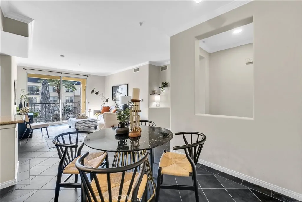Experience unique urban living and a luxurious lifestyle in this immaculate third-floor residence within the resort-style Watermarke Community. Step inside to a bright, airy floorplan that immediately feels like home, featuring handsome slate flooring in the living and dining areas and brand-new carpet in both bedrooms. The open kitchen is designed to delight the household chef, complete with granite countertops and stainless-steel appliances. Just off the living room, a private patio invites you to relax with sunset views or welcome guests while overlooking the entry to the clubhouse and its beautifully landscaped circular driveway. The primary bedroom offers comfort and convenience with a ceiling fan, a generous walk-in closet, and sleek tiled flooring. On the opposite side of the living room, youll find the secondary bedroom, a full bathroom, and a laundry room with good storage space; perfect for privacy and functionality. Residents of Watermarke enjoy exceptional amenities, including concierge service, a full kitchen and gathering space in the clubhouse, a private 35-seat theatre, pool, spa, tennis court, and regular community events. Located just moments from John Wayne Airport, UCI, Fashion Island, Newport Beach, and a wealth of shopping and dining options, this home places the best of Irvine at your doorstep. Luxury living made attainablecome tour this beautiful residence and make it yours today.