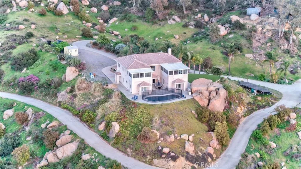 Tucked within the vineyard-lined hills of West Ramona, this 14+ acre estate offers the kind of scenery that feels straight out of Tuscany. From its elevated position, youll experience the best views in Ramona -sweeping panoramas of mountain ridges, the nearby reservoir, and, on clear days, the distant sparkle of La Jollas coastline. Wake each morning to the crisp scent of 400+ avocado and fruit trees thriving across your private orchards. With multiple graded pads, theres room to expand whether that means guest houses, event spaces, or a boutique vineyard. The main home embraces its surroundings with panoramic windows, cedar-lined ceilings, and travertine floors, creating a seamless blend of nature and comfort. The open gourmet kitchen flows into a spacious dining area perfect for gatherings, while the primary suite exudes quiet luxury with marble flooring and serene views. Upstairs, two enclosed patios offer flexible spaces for offices, yoga studios, or peaceful lounges. Sustainability meets self-sufficiency here, with owned solar panels and a private well. A separate tiny home provides versatility ideal for guests, staff, or as part of the profitable Airbnb business already in place. Picture vineyard dinners under the stars, morning coffee as the mist lifts off the hills, and family gatherings shaded by mature trees. This is more than property, its a turnkey income-producing sanctuary, rich with potential for agriculture, hospitality, or legacy living. A rare opportunity to own one of Southern Californias most enchanting estates.