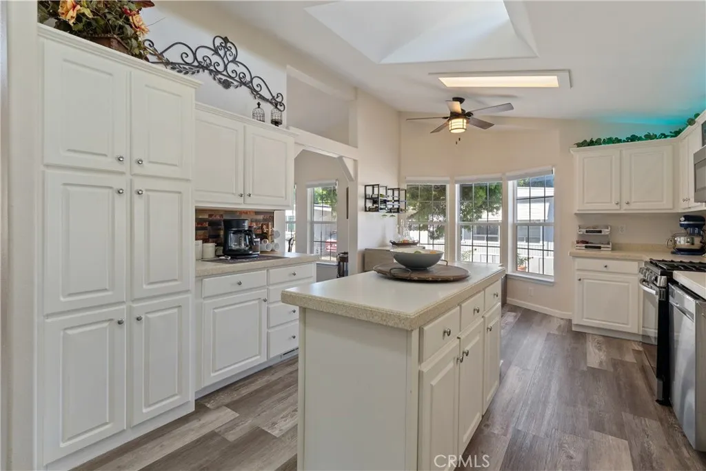 Located in Laguna Lake Mobile Estates, an all-age community with a pool, hot tub, library, two community rooms including one with a full kitchen, and a gym. This updated three bedroom, two bath home offers approximately 1,575 square feet of bright, open living space. The kitchen features an island and space for a breakfast table, opening to a separate dining area. Cathedral ceilings, high windows, and skylights fill the home with natural light. Relax by the wood-burning fireplace or soak in the indulgent tub. Recent updates include laminate flooring, fresh paint, and stove. Additional highlights include a deep two car carport, custom storage shed, indoor laundry, and a welcoming front porch. Come take a look today.