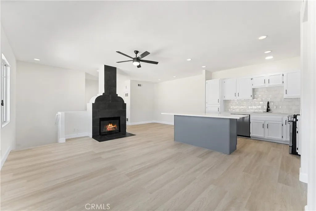 Step into this stunning, remodeled condo, where modern design meets everyday functionality. Located in a desirable gated community with access to a sparkling pool. Inside, youll find fresh paint throughout, brand-new hardware, and stylish new fixtures in every room. The kitchen is a showstopper, featuring an all-new island with soft-close drawers, plenty of bar seating, and a sleek backsplash that extends from the countertop to the upper cabinets. The modern sink includes a high-end faucet with digital temperature display, adding both convenience and a touch of luxury. Relax in the cozy living area, now centered around a completely revamped fireplaceretiled from floor to ceiling for a dramatic, updated look. Both bathrooms have been renovated with new tubs, elegant tile work, and updated fixtures. Additional highlights include new door handles throughout and a dual-control ceiling fan for ultimate comfort. The unit includes a two-car garage with direct access, and a washer and dryer conveniently located in the garage.
