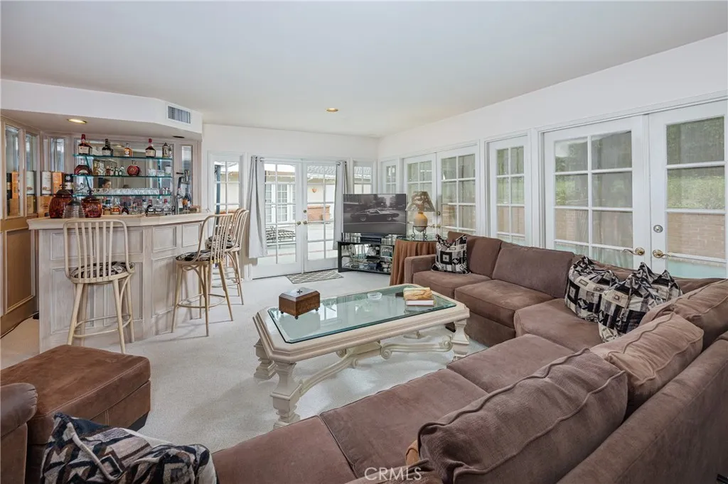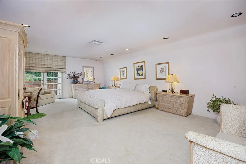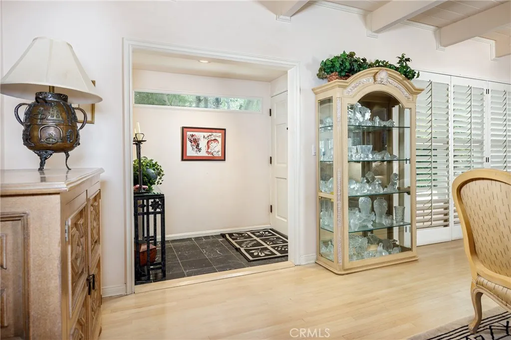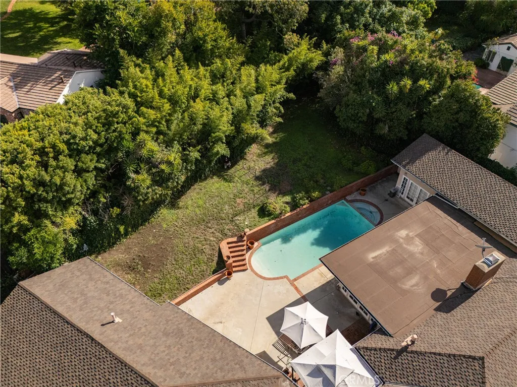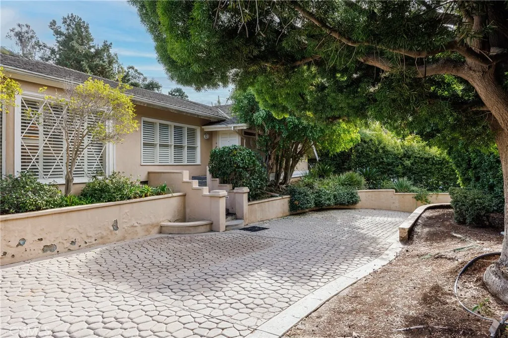Traditional single-story home with pool in Beautiful Beverly Hills. Thoughtfully designed floor plan and beautifully situated on a corner lot, this residence features 4 bedrooms, 4 bathrooms, colorful powder room, and an abundance of flexible living spaces perfect for comfort, entertaining, and future customization. Paved driveway leads to the gated two-car garage. Mature landscaping surrounds the property which creates total privacy. Oversized living room features light-colored wood flooring, warm wood ceiling, a marble fireplace, and large windows with plantation shutter. The generous scale of the living room, family room, and primary bedroom provides a uniquely comfortable atmosphere rarely found in single-story homes. The expansive family room offers ideal indoor-outdoor flow, with sliding glass doors opening directly to the sparkling pool. This room is designed for both relaxation and entertainment, featuring a wet bar and wall of built-in bookshelves for an extensive book collection, and ample space for large furniture. The chef-inspired kitchen is a true highlight of the home, equipped with a Viking 6-burner gas range, black granite countertops and a casual dining area. A beautifully bright formal dining room provides an additional space for elegant dining. The bedroom layout is ideal for hosting guests or extended family. All secondary bedrooms are designed as private suites ensuring comfort and privacy for visitors. The oversized main bedroom suite is a luxurious retreat, featuring a fireplace, plenty of space for a sitting area and views of the grounds. The main b