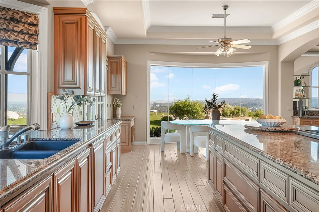 A rare opportunity to own one of the most prominently positioned homes in Valley Circle Estatescompletely private, fully gated, and perched at the top of a cul-de-sac with commanding 280-degree panoramic views. Custom built in 2004 and set on over an acre, this exceptional residence offers nearly 6,000 sq ft of refined living space, 5 bedrooms and 5 bathrooms. A dramatic two-story foyer sets an impressive tone, with soaring ceilings and abundant natural light drawing you into the sun-drenched great room, where walls of glass frame sweeping Valley vistas. The chefs kitchen is designed for both function and beauty, featuring dual Wolf ovens, warming drawer, six-burner Viking range, Sub-Zero refrigerator/freezer, an expansive center island, extensive cabinetry, and a butlers pantry. The kitchen flows seamlessly into the spacious family room with a striking fireplace and floor-to-ceiling windows, all opening to the entertainers backyard. A formal dining room and library with hand crafted ceiling exude elegance. The lower level hosts both the primary suite and the junior primary suitean ideal layout for multigenerational living or long-term guests. The primary retreat offers floor-to-ceiling windows overlooking a poolside lounge area with endless views, a luxurious spa-like bath with steam shower, and dual walk-in closets including a cedar closet. The junior primary features its own en-suite bath and generous proportions. Upstairs features a spacious loft-style living and entertainment area, three additional bedrooms, and two bathrooms. One upstairs bedroom functions beautifully