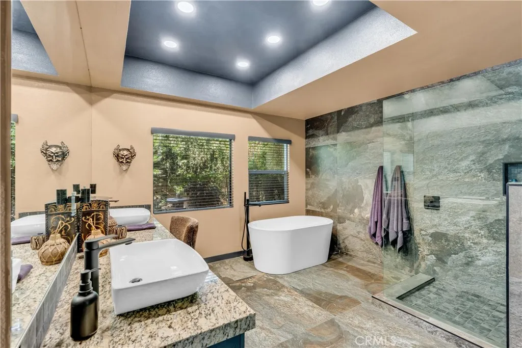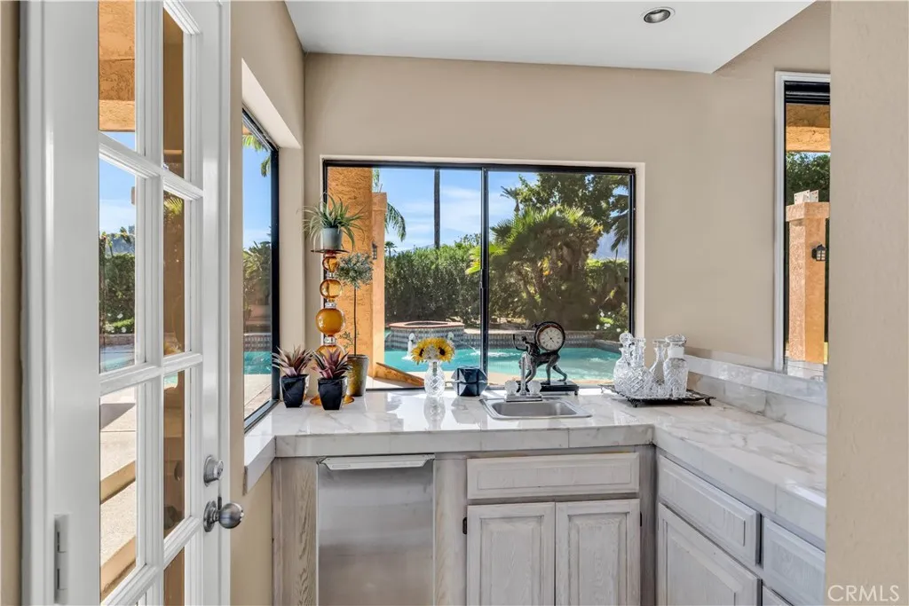 Experience refined desert living in this Contemporary Mediterranean retreat, offering 3,668 sq. ft. of elegant interiors on an expansive -acre lot in the heart of Rancho Mirage. A sweeping circular driveway sets a grand first impression, leading to a private front courtyard complete with a tranquil fountain. Inside, a sophisticated blend of materials elevates every space; marble flooring graces the entry, living and dining areas, while rich hardwood adds warmth to the kitchen, kitchen nook and family rooms. The home features three large bedrooms, each designed as master suites, providing luxurious comfort and privacy. The spacious living and family rooms each showcase their own fireplaces, creating inviting spaces to relax and entertain. A separate wet bar with a wine cooler enhances the homes effortless flow for gatherings. Modern upgrades include two newer AC units and SolarEdge solar panels$50K fully paid offfor year-round efficiency and peace of mind. A full security system adds an extra layer of comfort. Outdoors, the backyard is an entertainers dream, offering a separate patio area, a beautiful in-ground pool, and a relaxing hot tubboth perfect for enjoying the desert lifestyle. This residence also enjoys a prime location near Cotino, the new Disney Storyliving community, with no HOA, no land lease, and just a quick five-minute drive to the Westin Golf Resort & Spaadding even more convenience and value to this exceptional Rancho Mirage opportunity.