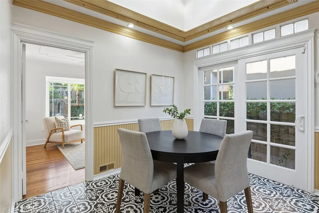 Introducing 266 Park Ave, an enchanting single level home constructed in 1927 by designer & builder Merton E. Cutting and located in the coveted Estates section of Belmont Heights. Sophisticated and private, this elegant property is perched at the crest of the hill on an elevated lot behind a gated entry. Incredible southern exposure drenches the interior with natural sunlight. The oversized living room features high barreled ceilings, fireplace and a large bay window with views of mature landscaping in the secluded courtyard. Step into the gorgeous dining room, framed with a grand lath & plaster tray ceiling and perfectly placed for both intimate dinners or memorable gatherings. Spacious and bright, the chefs kitchen has a dine-in lounge, vaulted ceilings, double skylights and granite countertops. Escape to any of the four distinctive bedrooms, including a generous primary with gas fireplace, large closet and an ensuite bathroom with soaking tub and walk in shower. The solarium and covered patio collaborate seamlessly, creating an indoor/outdoor space ideal for entertaining and enjoying the coastal breeze. A separate flex space off the garage serves as a gym or home office and is flanked by an outdoor art studio retreat, showcasing the many creative spaces with endless possibilities. An exquisite, one of a kind property with classic touches throughout including oak hardwood floors, vintage doors and hardware, delicate sconces, coved ceilings and so much more. A premier setting in one of the best neighborhoods in Long Beach, just moments from trendy restaurants, shopping an