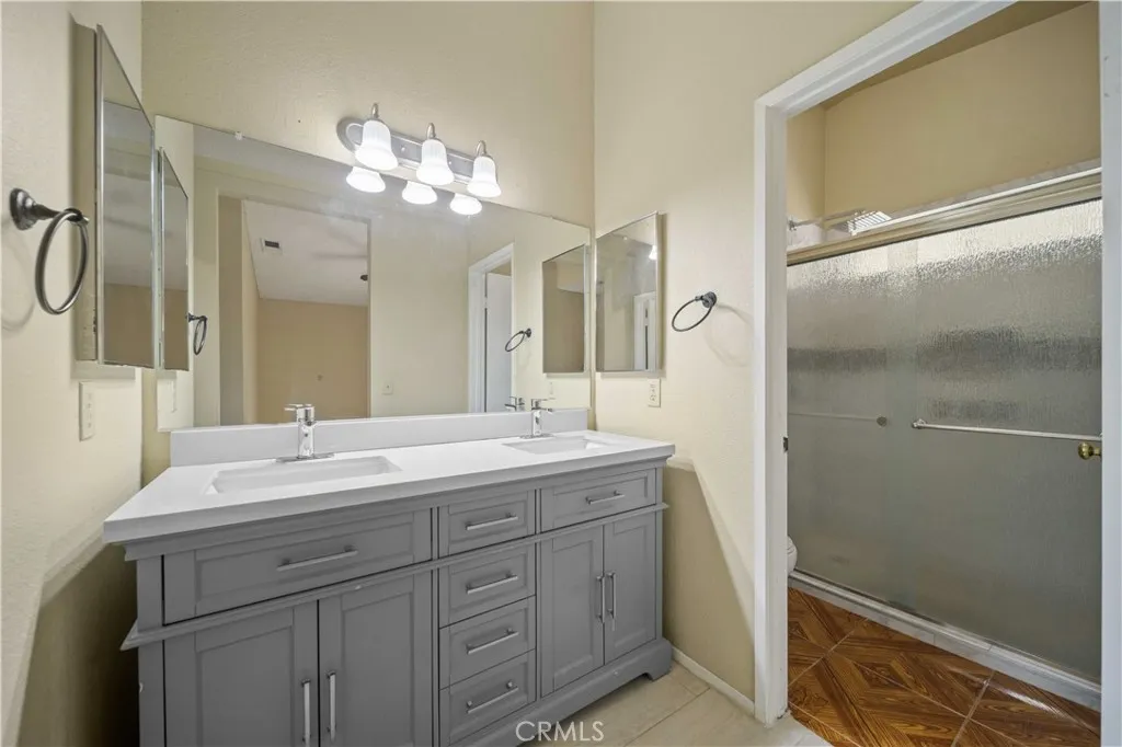 OWNED SOLAR!! Very Well-Maintained Home With Upgraded Tile Flooring Throughout, NEW Microwave, Upgraded Quartzite Kitchen Countertops And Breakfast Bar That Opens To Nice Sized Family Room. There Is Also A Formal Dining Room With Mirrored Panels, Hanging Chandelier Lighting For More Elegant Dining. The Dining Room Opens To The Living Room With Bay Windows and Brick Fireplace. Master Bedroom Features A Walk-In Closet And Tasteful Double Sink Vanity In Bathroom. Newer AC Unit. OWNED Solar With No Lease Payments...Just Low SCE Bills To Enjoy. Covered Patio In Backyard With Two Sheds For Additional Storage Surrounded With Block Walls. This Home Is A Must See!!