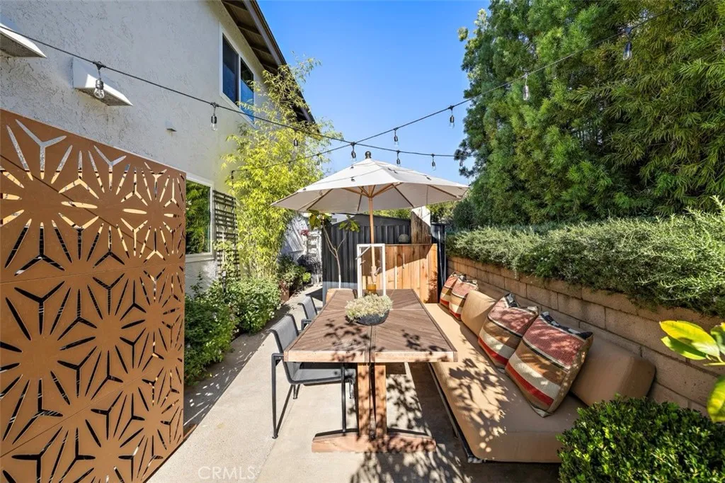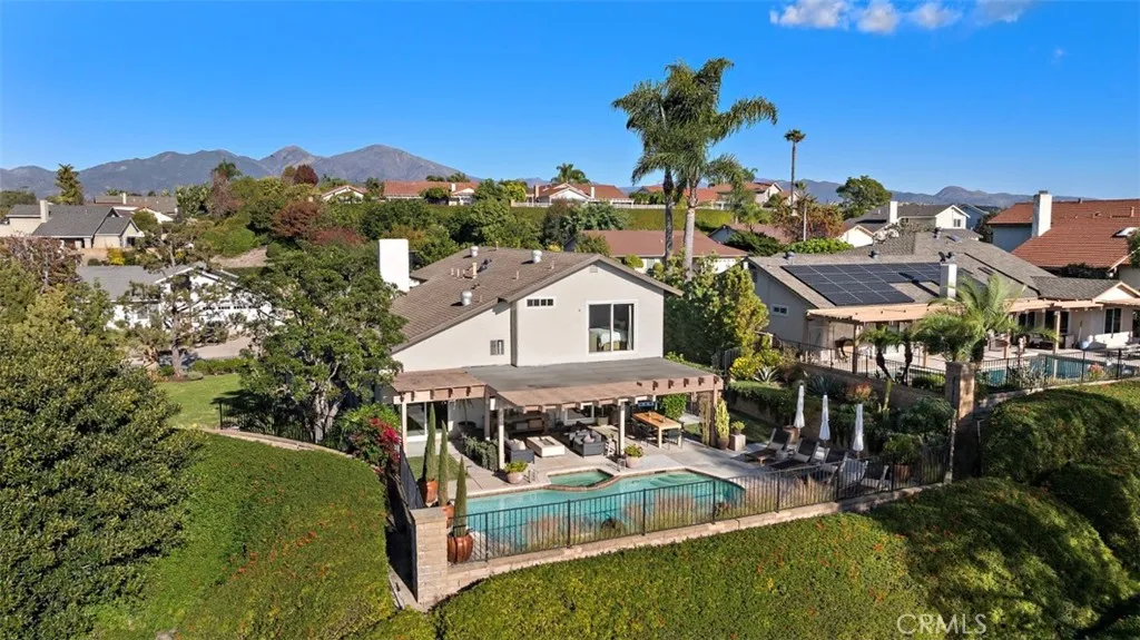 Experience unparalleled living in this 4-bedroom, 3-bath residence where luxury, lifestyle and privacy effortlessly converge. Thoughtfully reimagined with comfort and style in mind, this sensational home reflects an unwavering commitment to high-end design and refined finishes. Enter through the lush courtyard framed by a stunning backdrop of greenery and meticulously curated landscaping. Inside, rich oak hardwood and tile floors flow throughout. The sunlit living room impresses with soaring ceilings and a cozy fireplace, creating an inviting atmosphere suited for both everyday living and elegant entertaining. The renovated kitchen features Thermador appliances, marble counters, a custom built-in banquette, and RH lighting - an entertainer's dream crafted for unforgettable gatherings. Step outside to your own resort-style oasis. The expansive yard showcases a sparkling pool and spa, a bespoke RH fire table, and multiple intimate dining spaces, all set against spectacular sunset views. The upper level reveals a serene primary suite overlooking the pool and panoramic vistas, along with three additional bedrooms, a patio for relaxation, and a private office nook. Located within the Mission Viejo HOA community, amenities include lake and beach access, seasonal concerts, and annual fireworks - adding an unbeatable lifestyle experience to this already exceptional offering. This residence delivers on every expectation of elevated Southern California living.