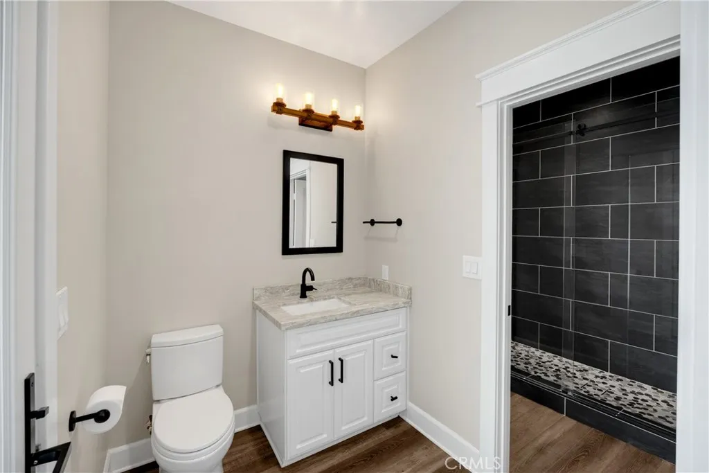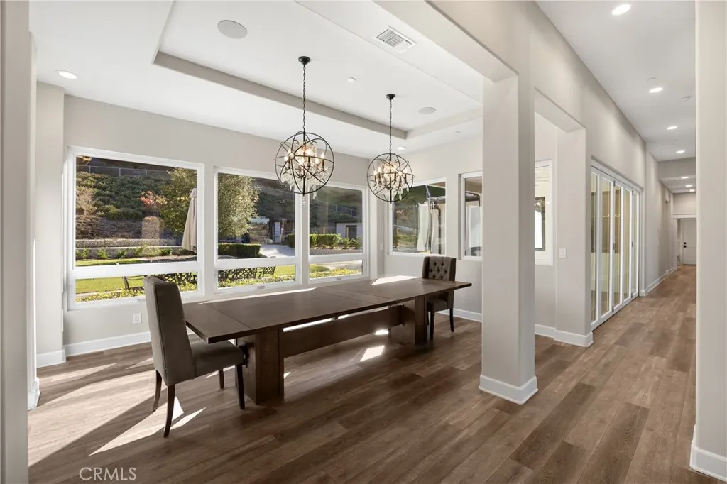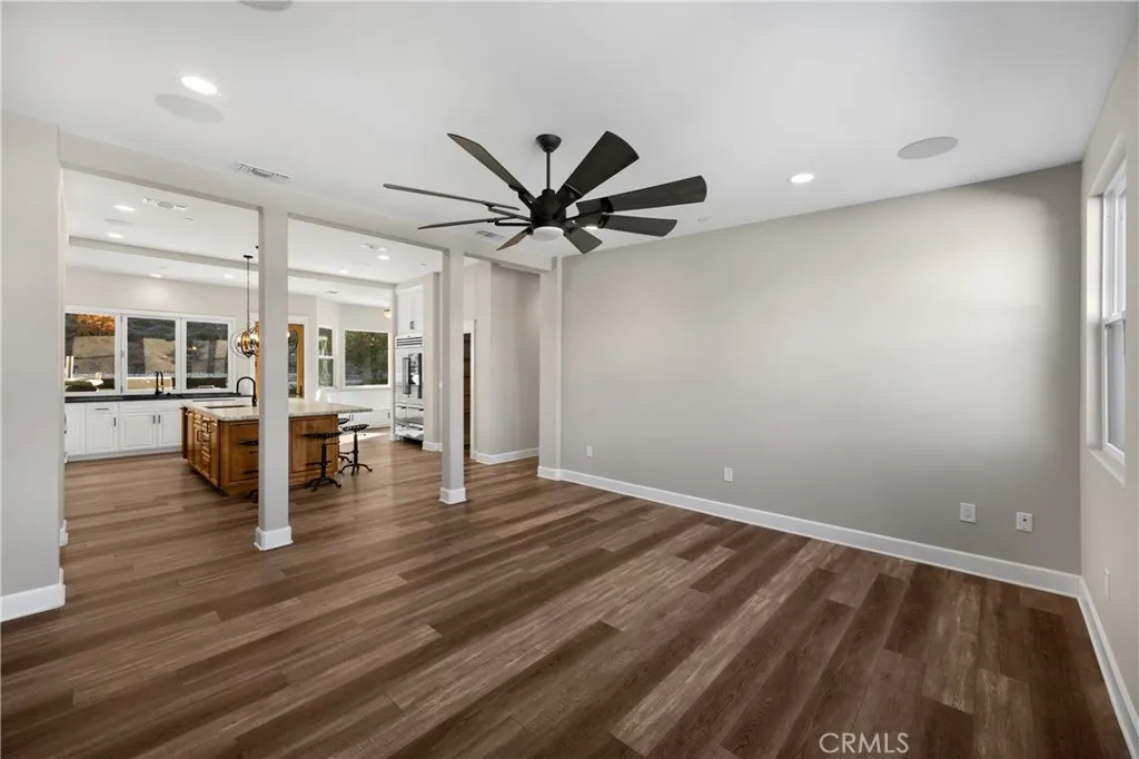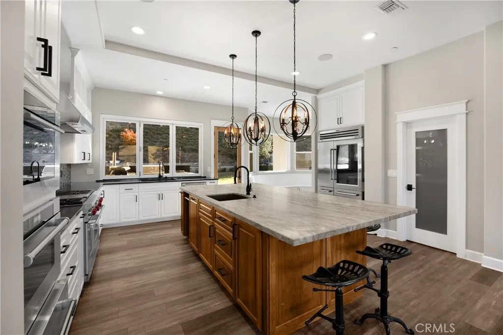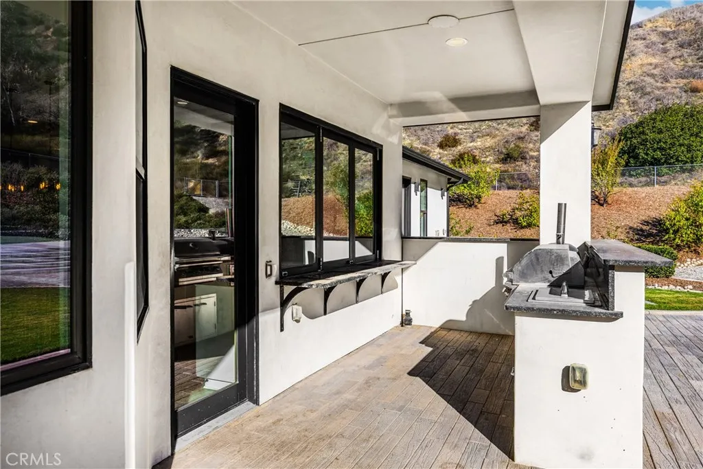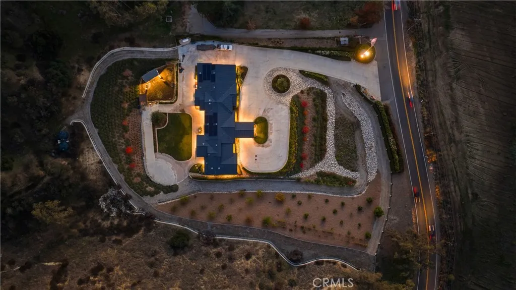 Experience refined luxury living on more than six acres in the highly desirable Live Oak Canyon area of Redlands. Completed in 2020, this custom single story estate offers an elegant blend of modern design, exceptional craftsmanship, and tranquil natural surroundings. High ceilings and an open concept layout create an impressive sense of space, while expansive windows provide beautiful views and seamless indoor outdoor living. The gourmet kitchen features top tier stainless steel appliances, a steam oven, six burner range, built in refrigerator, oversized stone island, and a spacious walk in pantry. The main living areas are enhanced by wide plank flooring, designer chandeliers, and custom cabinetry throughout. Four of the five bedrooms include private ensuite bathrooms and walk in closets. The fifth bedroom is currently used as a beautifully finished office, but can easily be converted back to a full bedroom, making a fantastic fit for a large family. Additional interiors include a dedicated exercise room and a large game and entertainment room complete with a full wet bar. The covered outdoor living area is designed for year round enjoyment and includes a built in barbecue, warming drawer, ice chest, and generous space for dining and relaxation. The grounds are thoughtfully planned for low maintenance and feature more than forty fruit trees, multiple citrus varieties, and grape vines. An additional graded pad on the property offers the potential for a future pool, casita, or workshop. A four car garage, RV parking, a climate controlled storage room, dual HVAC system, and