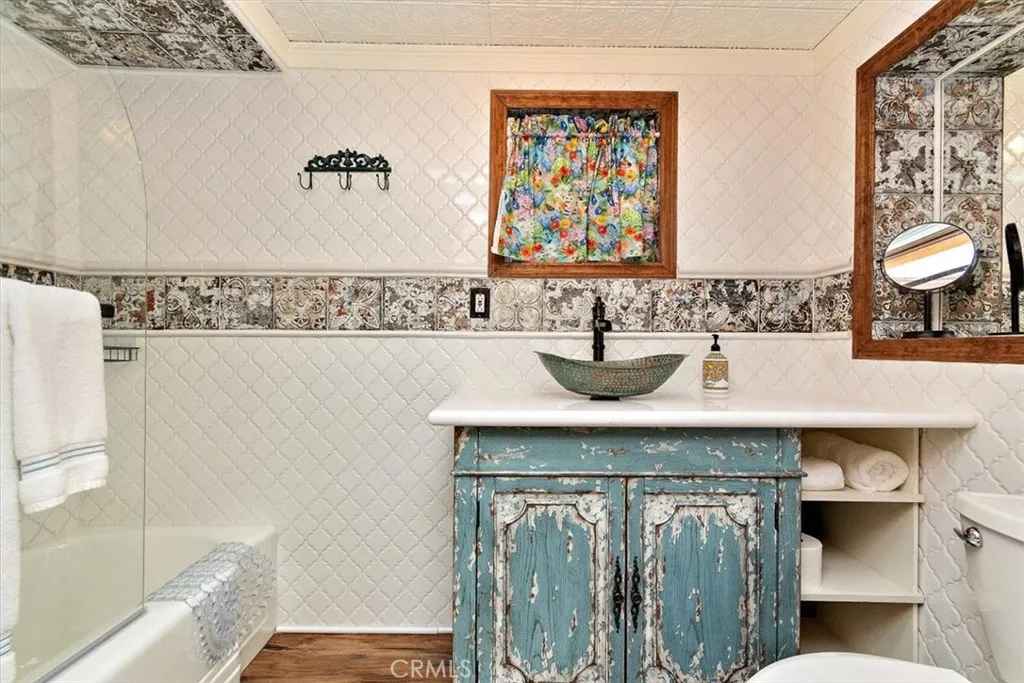 This home is an original "Old Arrowhead Charmer, vintage 1947, with a breathtaking Lake-View! And, it's very rare to find a "charmer" with so much of the original vintage character preserved, throughout. Yet, there are upgrades & creature comforts combined with a true classic look to make your life a breeze. Featuring a trex deck with long distance lake views. It's the perfect place for gathering with friends and family. The main house offers three bedrooms and two updated full baths with a large living room with wood-burning rock fireplace, updated kitchen, & separate laundry. Then, there's an absolutely fabulous large downstairs studio unit with and updated kitchen and full bath. And, the unit has it's own separate entrance with French doors and a patio. The entire estate is offered nearly turn-key furnished. Located on a cozy & quiet "no-through traffic" street and just up the street from the Lake Arrowhead Village, the lake & one of the three private beach clubs. This property currently has a STR permit that eases the permit process for the new owner.