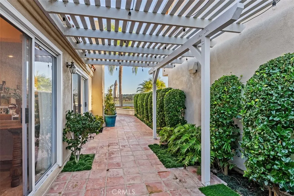 RARE OPPORTUNITY to own a SINGLE STORY VIEW home in gated Bayview Terrace. Enjoy panoramic views of Newport's BACK BAY from an oversized patio measuring over 700 sq. feet. The wrap around patio is designed with terra cotta colored paver tiles, is tastefully landscaped and is accessible from the living room, dining room, kitchen, and master bedroom. One of only six SINGLE STORIES with a view lot in the entire neighborhood, this light and bright 2 bedroom 2 full bath home has travertine and hardwood flooring, NO CARPET, an open floor plan, high ceilings, recessed lighting and is VERY LOW MAINTENANCE. New landscaping and a new sprinkler system were added to the home in 2018. A tastefully landscaped courtyard with a stone walkway lead to the front door. From the moment you enter the home from its travertine entry, glass sliders in the living room and dining room allow an abundance of natural light and unobstructed views of the back bay. The kitchen with rich, wood cabinets has a GAS cooktop, oven, and stainless steel appliances which include a built in microwave, dishwasher, and refrigerator. A large pantry, an eat in area, and a peninsula with space for bar stools complete the kitchen. The wall between the kitchen and dining rooms has an opening that has been expanded to make the transition to the dining room and living room feel more open. Enjoy a large master suite, also with fabulous views, that has high ceilings, two sets of glass sliding doors and a generous master closet. The master bath has a remodeled walk in shower and a dual sink vanity. A second bedroom with custom