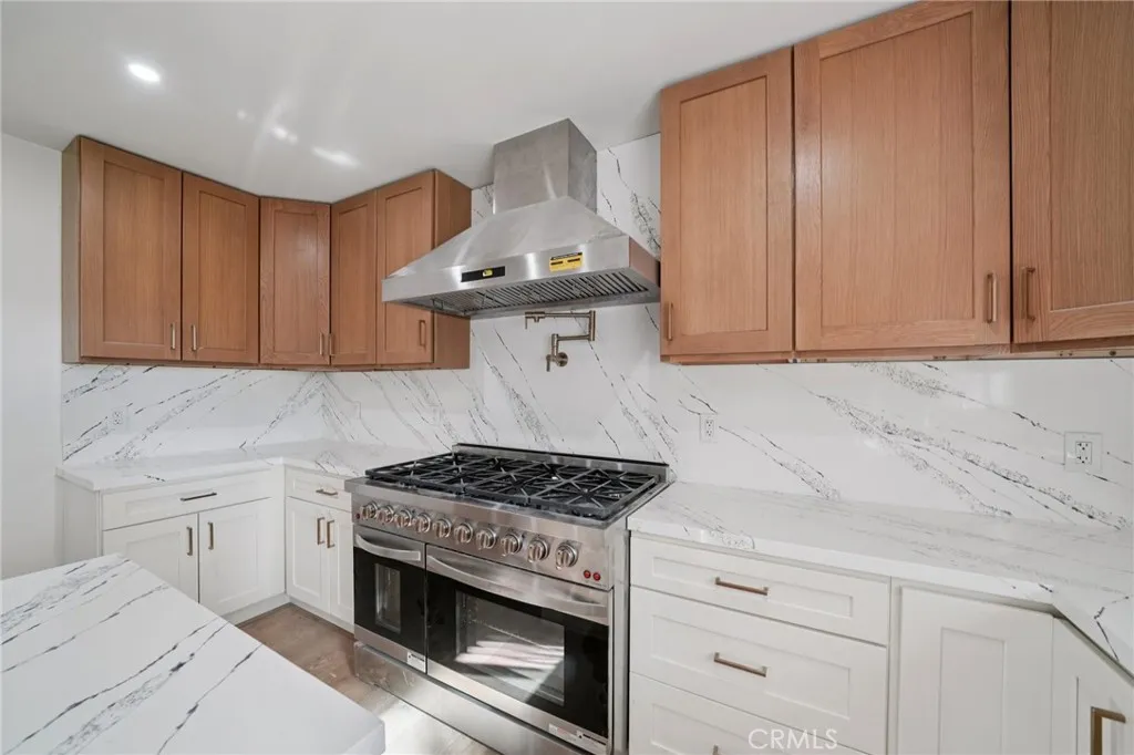 Welcome to 1098 Syracuse Dr a beautifully remodeled single-story home in one of Claremonts desirable tree-lined neighborhoods. This spacious property offers modern upgrades throughout, featuring 4 bedrooms, 2 bathrooms, and an open layout designed for everyday comfort and entertaining. Step inside to find a fresh contemporary look with new wide-plank flooring, recessed lighting, and large dual-pane windows bringing in natural light throughout. The brand-new chef-style kitchen is a standout, complete with a massive island, quartz countertops and backsplash, custom wood cabinetry, and high-end stainless steel appliances including a large 8-burner range with pot filler. The open kitchen flows seamlessly to the dining area and living room, creating a warm gathering space. The primary suite is a private retreat featuring a luxury spa-inspired bathroom with floating dual vanities, matte black fixtures, a stunning walk-in shower, and a freestanding soaking tub. Additional bedrooms are generously sized with closet space ideal for family, guests, or flexible use. Enjoy Southern California living in the large backyard with mature trees, grass area, and covered patioperfect for outdoor dining, relaxing, or play. A spacious attached 2-car garage and wide driveway provide ample parking and storage. Located minutes from Claremont Colleges, parks, shopping, dining, and top-rated schools, this move-in ready home blends comfort, design, and convenience. A rare turn-key opportunity in Claremontdont miss it!