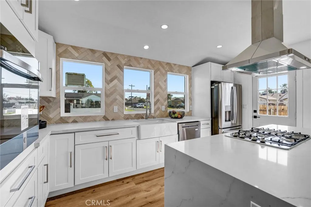 MAJOR PRICE REDUCTION - Welcome to 10505 Halbrent Ave, an exquisitely reimagined, turnkey modern ranch-style home located in the heart of Mission Hills. This 3-bedroom, 2-bath, 1,748 sq ft residence sits proudly on a large corner lot and features a stunning swimming pool, a spacious detached garage, and an open, airy floor plan ideal for todays lifestyle. Step inside to a fully renovated interior where every surface has been thoughtfully redesigned. The expansive living room is filled with natural light and flows seamlessly into the dining area and the brand-new chefs kitchen. The kitchen showcases all-new custom cabinetry, quartz countertops, designer backsplash, stainless steel appliances, and an oversized peninsula perfect for entertaining. The private primary suite features a walk-in closet and a beautifully updated en-suite bath with a luxury shower, modern finishes, and a contemporary navy double-vanity. Two additional spacious bedrooms share a second fully remodeled bathroom with premium fixtures and tilework. A dedicated in-home laundry area adds convenience and function. Outside, enjoy a backyard built for relaxation and gatherings: a sparkling in-ground pool, multiple lounging areas, fresh hardscape, and new fencing that provides privacy and a clean, modern aesthetic. The detached garage offers secure parking, storage, or potential ADU possibilities (buyer to verify). The large lot and corner frontage add curb appeal and expand future potential. Located minutes from shops, restaurants, prime schools, the 405/118 freeways, and local parks, this home offers the perf