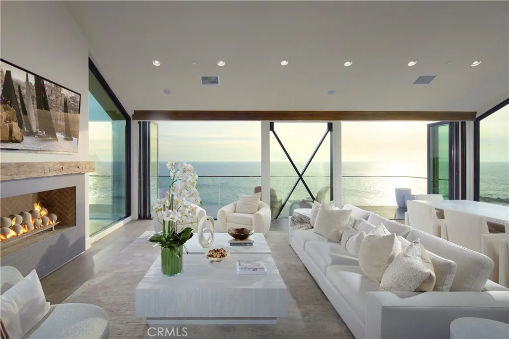 From its stunning perch overlooking the ocean, the beach at Mussel Cove, breaking waves, rocky cliffs, Catalina Island and spectacular sunsets, this contemporary Laguna Beach masterpiece redefines luxurious oceanfront style and living. Newly remodeled to the highest standards inside and outdoors, the custom estate is located at the end of a cul-de-sac in guard-gated Three Arch Bay, one of Southern Californias most sought-after addresses. The sound of the surf creates a natural playlist for an incomparable lifestyle, lending excitement to entertaining and calm to relaxation. Virtually every detail of the home is new, including its roof and exterior walls clad in natural stone tile. Approximately 5,072 square feet, the residence offers direct beach access and reveals itself to be exceptionally open, bright and enviably private. A loft-style foyer with sitting area opens via a staircase to living areas below. Enjoy vaulted and beamed ceilings, skylights, and floor-to-ceiling windows that frame ocean and beach views. Seamless in design, living and dining rooms open to an ocean-view balcony via bifold glass doors, a linear fireplace adds visual flair, and the family room features an elevator with access to lower levels. Top-tier finishes and fixtures were incorporated into the new remodel at every opportunity, including wide-plank wood flooring, high-end lighting and glass stair rails. In the kitchen, a peninsula and an island accommodate meal prep and casual dining, and a glass-enclosed wine wall, custom white Shaker cabinetry, full backsplash, built-in Sub-Zero refrigerator, t