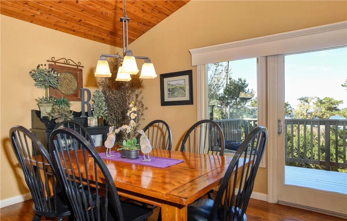 OCEAN VIEW FROM EVERY ROOM. Enter this meticulously maintained and updated home at the top of Park Hill via the spacious front porch, and take in the tasteful finishes and white water views! Vaulted beam ceilings and Adelaide stone fireplace complement the window wall with ocean views that stretch to the San Simeon Point and beyond. Wood floors, stone countertops and updated cabinets blend with great wall colors, creating a very relaxing home. Decks off of the living room and kitchen provide sitting areas for whale watching and BBQing. The two-car garage, with plenty of built-ins, is on the same level as the kitchen/living/dining room, along with a 1/4 bathroom. Downstairs, the main bedroom with ocean views available from bed and sitting areas, even the vanity. The en suite bathroom has a double vanity and a walk-in shower. Down the hall is the guest bedroom with ocean views and a full bathroom. The third bedroom is a separate guest quarters with its own 1/2 bath with plenty of built-ins including bunk beds. This home is very much move-in-ready! The front yard is hardscaped and handsome with easy-care plants. The backyard has a vegetable garden with berries, artichokes, etc. Below the house is a finished workshop with automatic lights, plenty of power and dry storage. Call your Realtor to see this one for yourself!