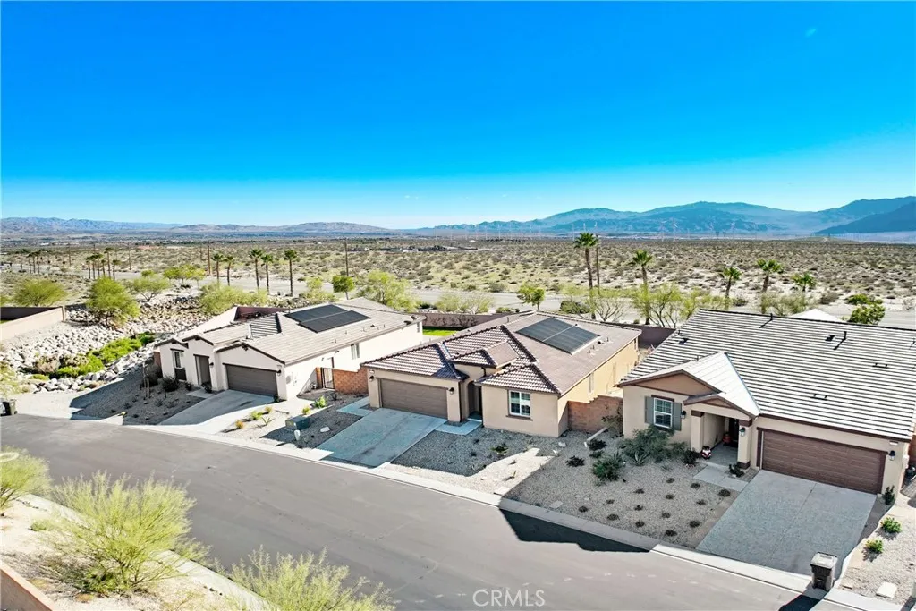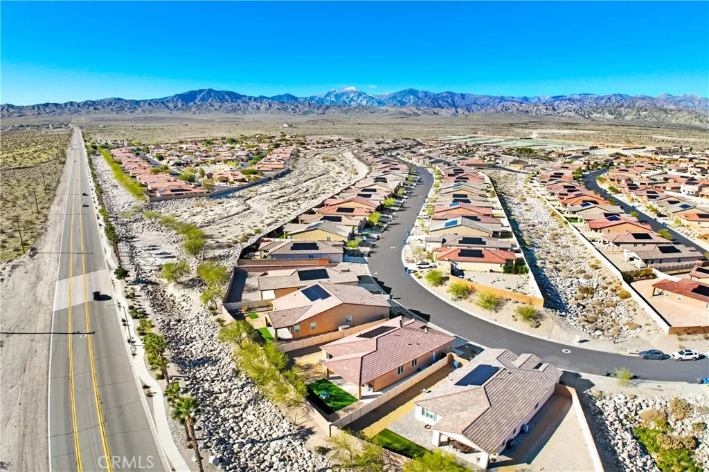 Welcome to 11695 E Crescent in Desert Hot Springs - a comfortable and inviting single-story home with beautiful, non-obstructed mountain and palm tree views. This newer-built home has everything youre looking for in new construction without spending extra on upgrades. LOW HOA $155/per month and LOW Solar Lease Payment $118/per month! Both the front&back yards have been completely upgraded with fresh landscaping and clean hardscape. The backyard features a covered California room patio&a dog run, perfect for furry friends, & offers privacy with no home directly in front and only two neighbors on the left and right sides creating a serene and private setting. Parking is plentiful with your own 2-Car Driveway and 2-Car Attached Direct Access Garage. Inside, the home features updated paint and flooring throughout. Inside, the home feels bright and welcoming, featuring custom interior paint, a grand foyer hallway, shutters throughout, and an open living area that flows seamlessly into the 'WOW FACTOR' kitchen, dining, and living room. The floorplan is practical and thoughtfully designed, with the primary bedroom separated from the additional bedrooms to offer privacy and convenience. Located just 15 minutes from Palm Springs, this home combines easy access to the city with a peaceful, private setting. A standout feature is the assumable VA loan (available to qualified VA buyers only) with an interest rate of 4.250% and an estimated monthly payment of $2,350. This rare opportunity allows eligible buyers to take over a significantly lower rate than whats currently available, poten