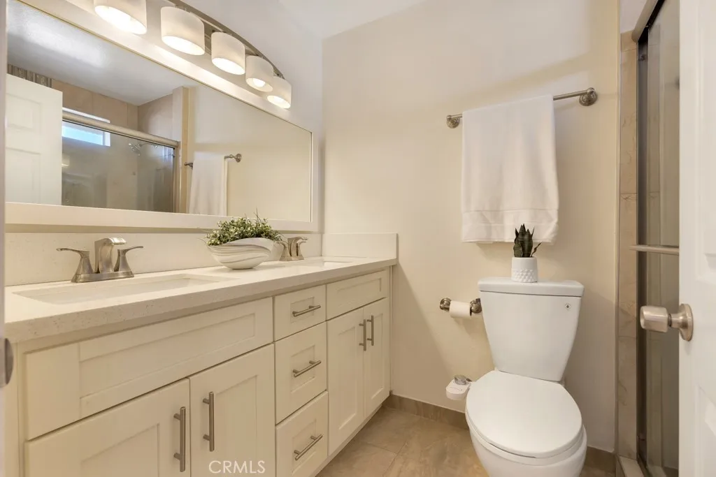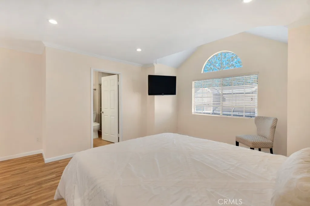 Discover this beautifully reimagined 3 bed + 3 bath tri-level corner townhome, perfectly situated in the heart of North Hills. This light-filled residence blends modern style with everyday comfort, offering an inviting layout ideal for both relaxing and entertaining. Step into a warm, airy living room featuring a striking marble-accented fireplace and direct access to a private patio overlooking the peaceful courtyard. From there, the split-level design guides you up to a spacious dining area that flows effortlessly into a contemporary kitchen. The wrap-around kitchen impresses with Quartz countertops, custom cabinetry, full tile backsplash, waterproofed laminate floors, recessed lighting, and sleek Samsung stainless steel appliances. The second level hosts an expansive primary suite designed for luxury living, complete with laminate flooring, crown molding, dimmable LED lighting, a generous walk-in closet, and a spa-inspired bathroom with dual Quartz vanities and a stunning glass-enclosed shower. Two additional bedrooms, also located on the second level, offer great natural light, mirrored closets, and the same refined finishes. The hallway bath features a modern vanity, framed mirror, and a jetted Jacuzzi tub for unwinding. Convenience continues with a large side-by-side laundry area, extra storage, and direct access to the attached 2-car garage. Additional upgrades include laminate floors throughout most of the home, porcelain tile accents, solid wood staircases, custom railings, and LED lighting in nearly every room. The gated community provides low HOA dues that cover