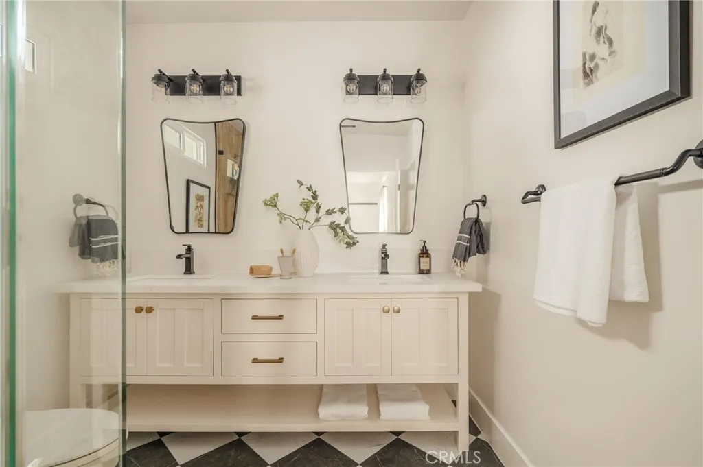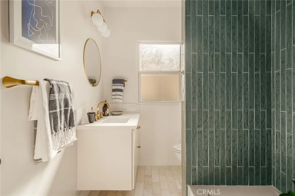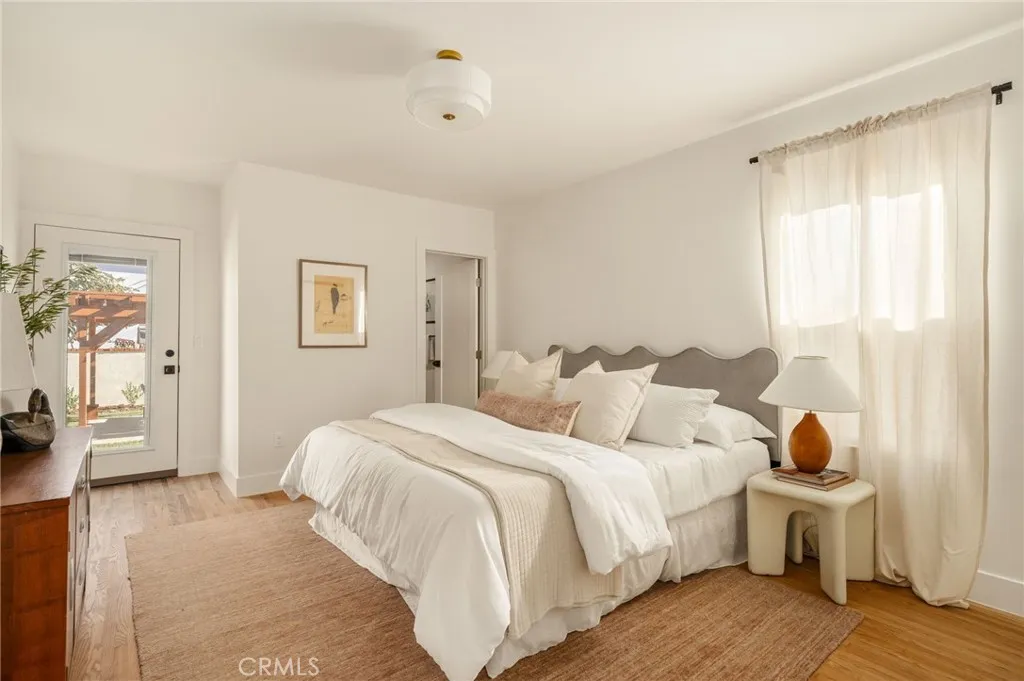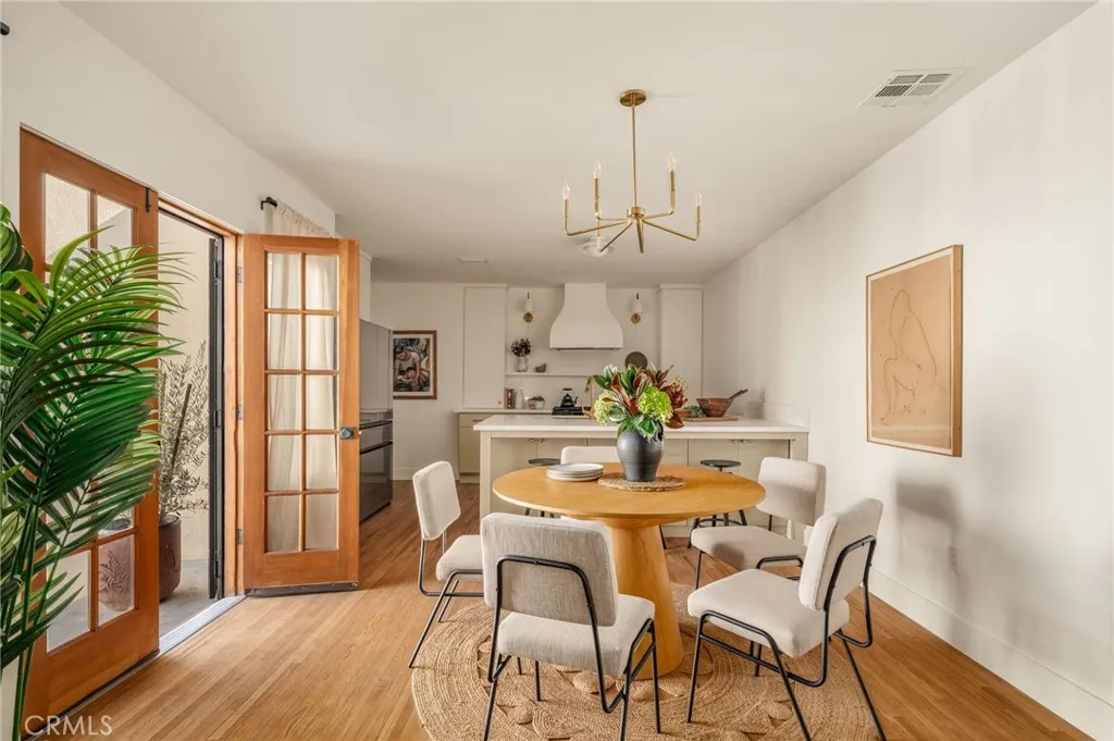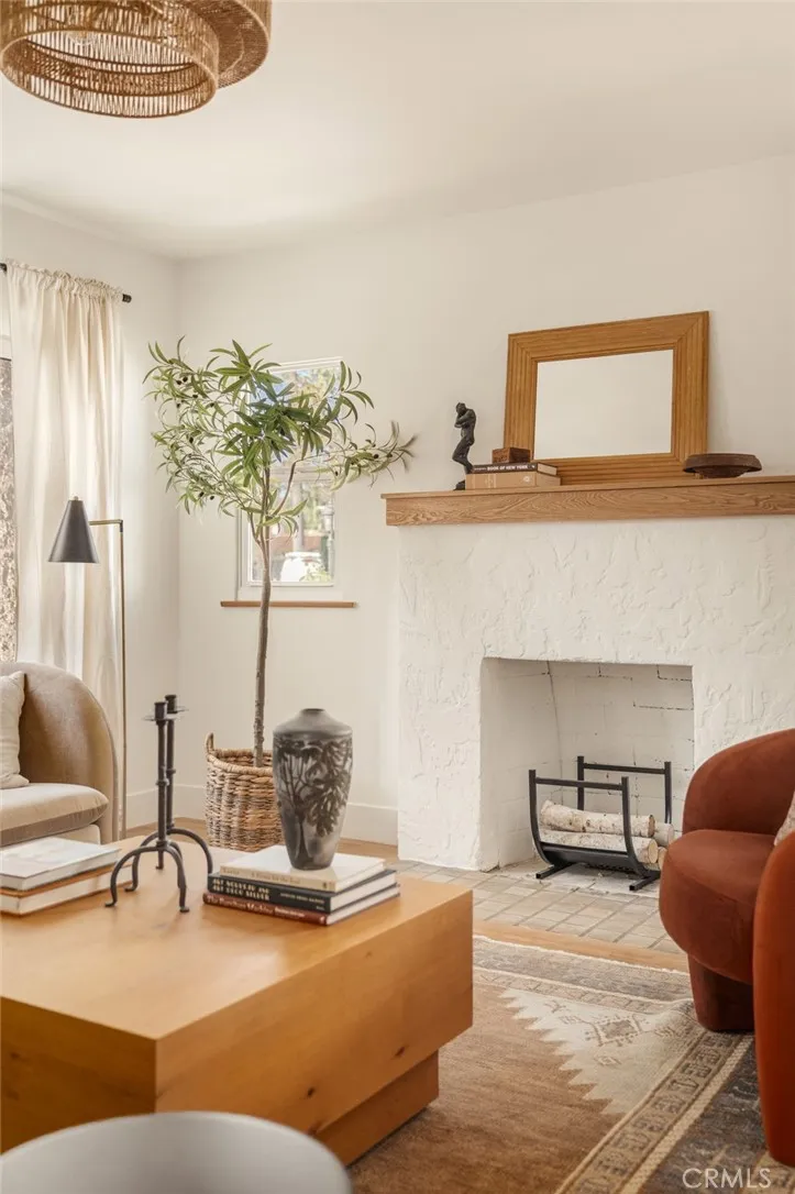 Welcome to 4117 Brunswick Ave, a beautifully reimagined 1920s Spanish Revival nestled in the heart of Atwater Village. Framed by Spanish clay tiles and a romantic turret entry, your senses are immediately captivated upon entering the light-filled living room, where soft daylight dances across the room. The refinished hardwood floors and original fireplace are timeless details that set the tone for the home. Adjacent to the living room, the dining area opens to the backyard through wood French doors providing a seamless connection to the outdoor spaces. For culinary enthusiasts, the kitchen is a dream, featuring custom wood cabinetry, a spacious 8-foot island with seating for four, and a statement hood anchoring the room. Not to be missed, tucked in the corner and drenched in a deep burgundy hue, the butler's pantry is moody and warm, creating a magazine-worthy design moment. Down the hall, the bedrooms are calm and bright, including the primary suite with picturesque views of the garden. The ensuite bath is finished with hand-set zellige tiles, dual sinks, custom cabinetry, and a black-and-white checkered floor that balances classic and contemporary styles. The guest bath continues the same clean, thoughtful design. Outdoors, the yard features drought-friendly landscaping, a private lawn, and a pergola-style arbor, offering a serene escape for enjoying a quiet evening or hosting a gathering. The garage retains its mission-style stepped roofline and offers extra space with ADU potential. This home is in an excellent location, just blocks from Atwater's best restaurants and s