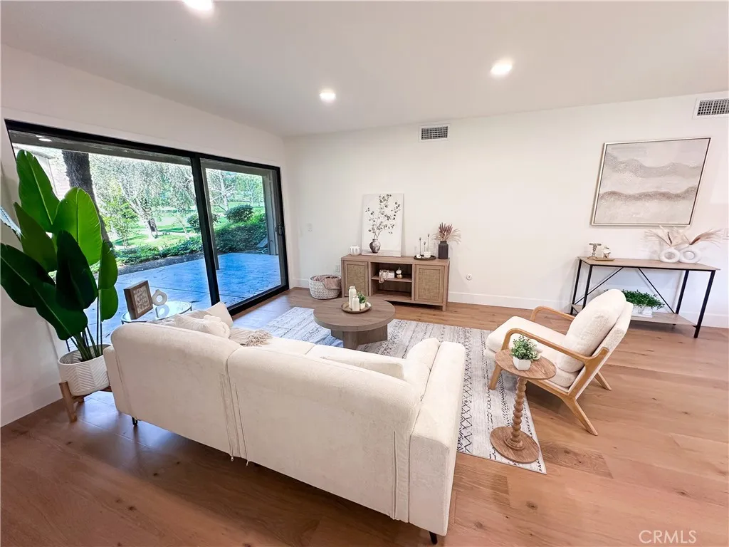 Fully Remodeled Golf Course View Home! Don't miss this stunning, fully remodeled lower-level end-unit 3-bedroom, 2-bath condo with a 2-car detached garage in Laguna Niguels sought-after East Nine community. The kitchen features new white oak shaker-style cabinets, quartz countertops, and new stainless steel appliances. Recessed lighting brightens the kitchen, dining, and family room areas. The guest bath includes a new tub with subway tile design, while the primary suite offers a new shower and vanity, stylish fixtures, dual closets, and patio access. This single-level floor plan includes a spacious living and dining area bathed in natural light - thanks to its end-unit position - and flows seamlessly to the patio, offering relaxing views of the lush greenery and limited, more distant fairways of El Niguel Country Club. Additional upgrades include waterproof real wood flooring throughout, new doors, frosted-glass closet doors, new onyx vinyl windows and sliders, and a premium frosted-glass entry door. Major system improvements include a new electrical panel, new water heater, and refurbished central heating and air conditioning system with a new thermostat for maximum comfort year-round. Residents of East Nine enjoy resort-style amenities including a sparkling pool, spa, picnic areas with BBQs, peaceful walking paths, and close proximity to Salt Creek Beach, Dana Point Harbor, luxury resorts, top-rated schools, and shopping and dining. HOA dues cover water and trash.