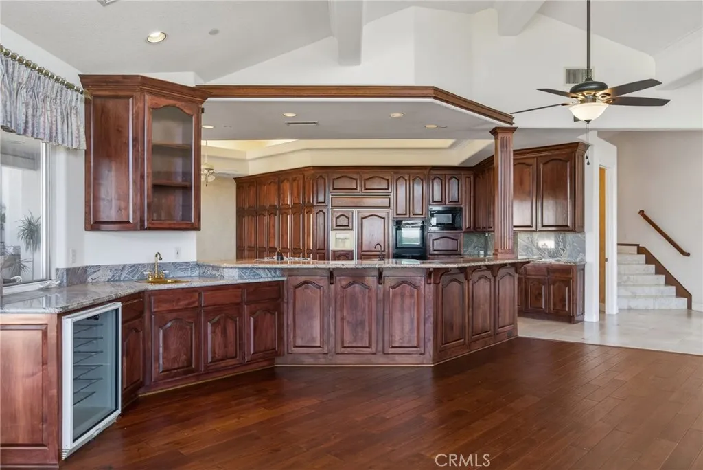 **ALESSANDRO HEIGHTS WYNDHAM HILL ESTATES** This remarkable Modified Traditional Brick Ranch-Style Estate seamlessly blends luxury and comfort in a thoughtfully designed floor plan featuring grand living spaces and generously appointed bedroom suites. From the moment you step into the foyer, the homes striking architecture captivates, complemented by breathtaking views of the Prenda Arroyo, Alessandro Creek, rolling hills, city lights, and majestic mountains beyond. The formal living room, complete with a cozy fireplace, flows effortlessly into the elegant formal dining room. The heart of the home is the expansive great room, highlighted by a distinctive turned brick column fireplace and a chefs dream kitchen. Here, a massive island, custom cabinetry, stone countertops, and professional-grade built-in appliances set the stage for culinary excellence and effortless entertaining. The private primary suite is a serene retreat, complete with a tranquil sitting room, a two-way fireplace connecting the bedroom to the luxurious ensuite bath, a private lanai for soaking in the views, and ample space for relaxation. The additional bedroom wing offers spacious accommodations, each with an ensuite bath and generous closets, along with a convenient indoor laundry room. A separate guest wing, currently styled as a study, features its own private entrance and bath, making it ideal for visitors or multigenerational living. Outdoors, the professionally landscaped grounds are a true oasis, designed with water-wise plantings and featuring a sparkling pool, spa, and putting green. The expans
