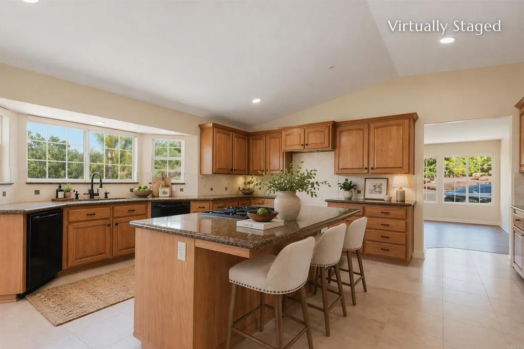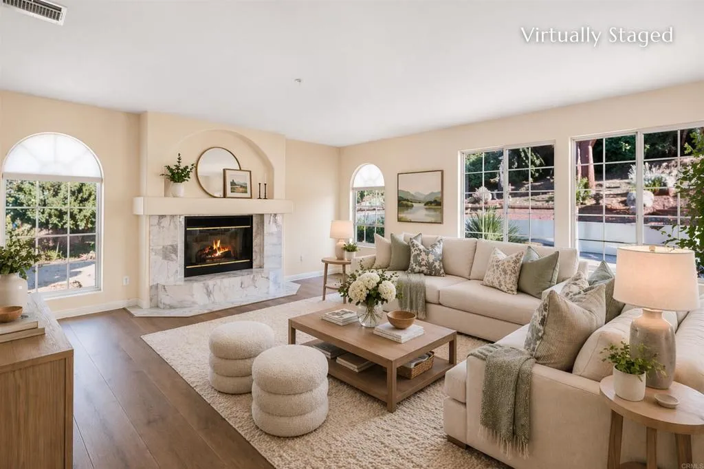 Welcome home to a stunning single-story Mediterranean-style retreat set at the end of a quiet cul-de-sac in the coveted Gird Valley hills of Fallbrook. This exceptional property blends luxury, comfort, and versatility, making it an ideal haven for todays MULTIGENERATIONAL lifestyle with an attached 2000 SQFT 2-bedroom ADU with its own private entrance, polished finishes, and a dedicated laundry closet The single-story main residence showcases polished travertine floors, 3 spacious bedrooms, and beautifully arranged living spaces including a family room and formal dining room. The kitchen is thoughtfully designed to capture views from every angle, creating a light-filled culinary space that connects seamlessly to the surrounding hillsides. Expansive balconies off the living room and kitchen elevate daily living with sweeping vistas, while the grand playroom provides an impressive bonus area for recreation or gatherings. A fully fenced pool and spa perfect for relaxing under the California sun. Additional highlights include a PAID OFF SOLAR SYSTEM, a circular driveway, 5-car garage for the car enthusiast, and RV parking, delivering exceptional utility and long-term value. This remarkable estate offers the beauty, space, and lifestyle youve been dreaming oftruly a home you deserve.