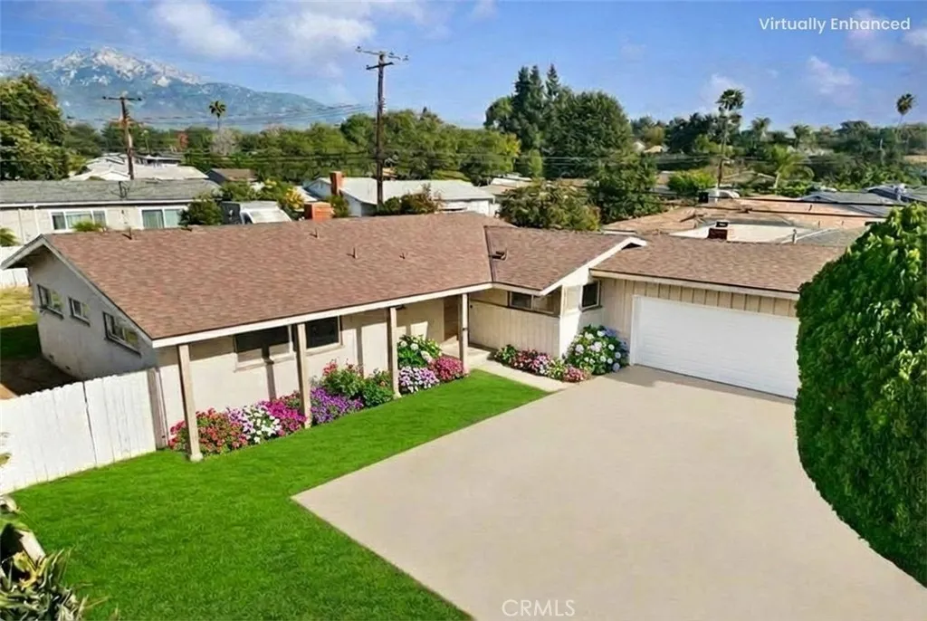 A charming single-story home offering the perfect blend of comfort and convenience in a prime Upland location. Step inside to a foyer leading to a spacious living room highlighted by a large, inviting brick fireplace, original natural wood flooring in great condition, and sliding glass doors that fill the space with natural light. The spacious kitchen offers ample cabinetry and storage, a cozy dining nook, built-in desk area, and a front window overlooking the yardmaintaining the homes original charm. An indoor laundry area adds everyday ease and functionality. Enjoy three generously sized bedrooms with large closets, along with two full bathrooms with upgraded vanities, modern lighting fixtures, showers, and a large soaking tub perfect for relaxation. Home also offers generous closet space in the hallway. The exterior is ideal for entertaining, featuring a generous backyard, new vinyl fencing, and a large side yard with a covered concrete slab and latticeperfect for gatherings and barbecues, and a new roof! Ideally located within walking distance to shopping, restaurants, and schools, this home also offers beautiful mountain views and close proximity to Red Hill Country Club and golf course. A rare opportunity in a sought-after neighborhoodthis one wont last!