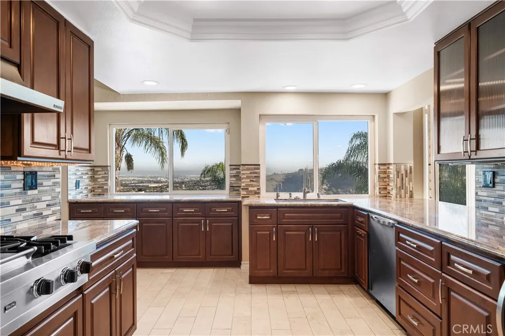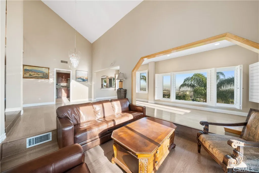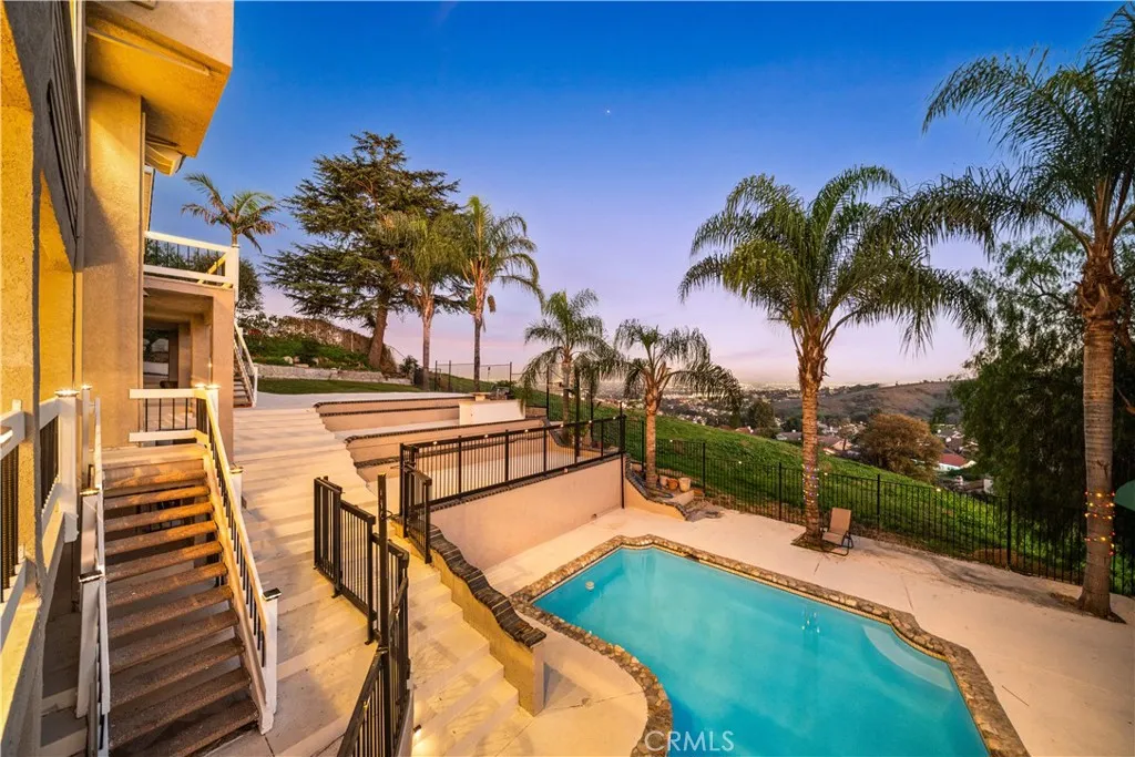 Location and View! Discover breathtaking panoramic mountain and city-light views from this stunning tri-level residence, perfectly situated in one of the most desirable neighborhoods in North Chino Hills. Set on an expansive 12,980 SqFt lot, this estate offers 4,931 SqFt of luxurious living space, resort-style outdoor amenities, and a layout designed for comfort, privacy, and unforgettable views from nearly every room. A grand double-door entry welcomes you into a soaring high-ceiling foyer and an open, light-filled living area. The formal living room features a beautiful fireplace, creating a warm and inviting ambiance that complements the spectacular views framed through the large windows. The kitchen has been tastefully renovated with custom cabinetry, granite countertops, and a spacious layout perfect for cooking and gatherings. The adjoining formal dining room and family room all overlook the scenic panorama, enhancing the indooroutdoor living experience. The main level offers exceptional convenience with three bedrooms and three bathrooms, including a well-appointed primary suite. The lower level, ideal for multi-generational living, features two additional bedrooms, a second primary suite, and a spacious living/entertainment roomall enjoying the same sweeping mountain views. On the top floor, youll find a large bonus room, a dedicated gym, and an oversized view deck, offering the perfect space for family activities, relaxation, and entertaining while taking in the 180-degree vistas. The backyard retreat is designed for true California living, boasting a sparkling poo
