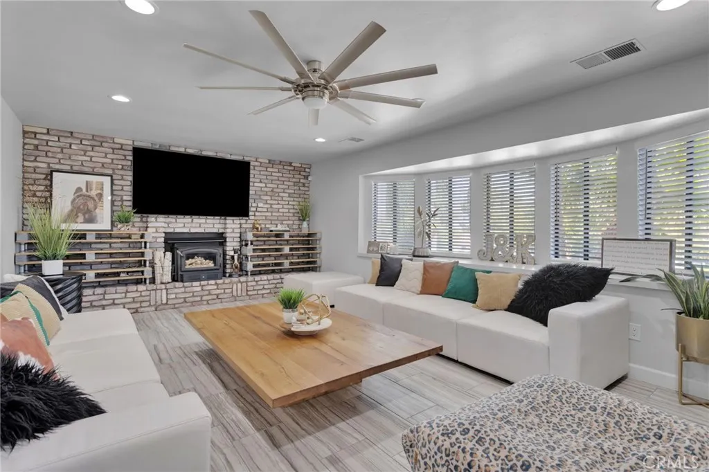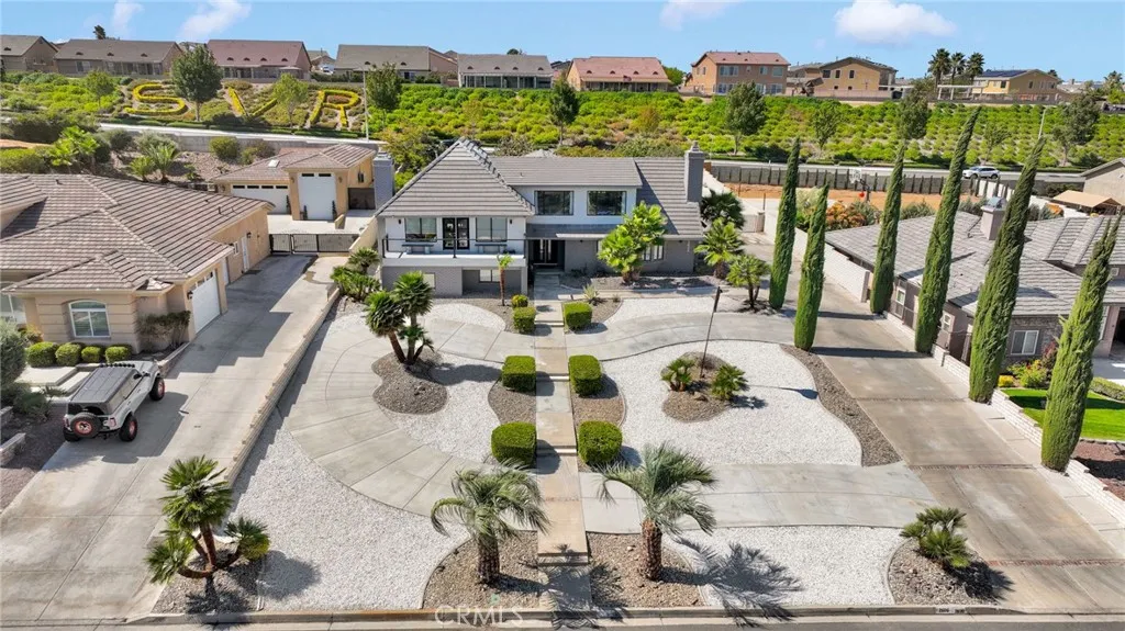 BACK ON MARKET!! At no fault of the seller. Welcome to an extraordinary architectural residence located within the highly desired community of Spring Valley Lake. Set on one of the rare 20,000 sqft half-acre lots, this FOUR-level Mid-Century Moderninspired home offers a distinctive design and presence rarely found in the High Desert. The property delivers grand luxury curb appeal, with the home set far back from the street for added privacy and comfort, complimented by mature palm trees and a commanding arrival youll be proud to showcase. True gated RV & Boat parkinga rare feature within this HOAalong with ample additional parking. THIS IS A 3RD BEDROOM (with a possible 4th bedroom, could easily convert the loft area into a full living quarters), 2 full bath, 2 half bath residence has been completely remodeled, blending industrial-modern design with warm natural elements. High ceilings, oversized ceiling fans, the appearance of architectural concrete pillars, and rich all natural wood beams & finishes. The designer kitchen features commercial-grade built-in appliances, including a 48-inch built-in refrigerator, convection oven, microwave, wine refrigerator, custom range hood, and commercial-style sink and faucet. All natural-wood breakfast and dining nook is seamlessly integrated into the countertops. While a wood-burning stove anchors the family room. The entire third level offers an expansive great room with 2 grand windows and dual access doors to a private balcony with valley views, wet bar, fireplace, half bathroomideal for a home office, game room, formal dining area,