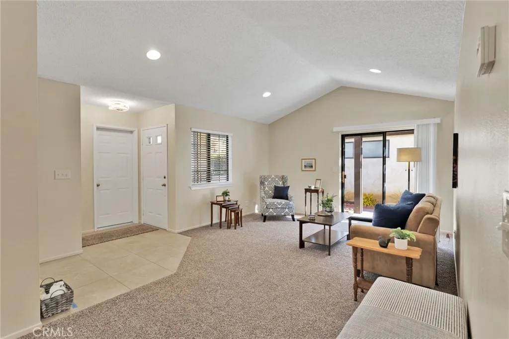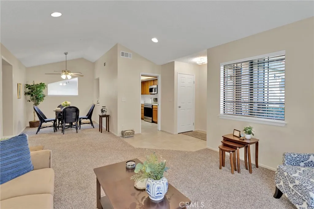 Welcome to this beautifully maintained single-story home offering comfort, quality, and timeless appeal. From the moment you arrive, youll appreciate the attractive tile roof, manicured landscaping, and a sense of pride of ownership throughout. Inside, the home features vaulted ceilings, fresh neutral finishes, recessed lighting, and plush carpeting, creating a light and welcoming atmosphere. The spacious living area flows seamlessly into the dining area and kitchen, creating a functional and inviting layout. The primary suite is generously sized and includes a large walk-in closet and an en-suite bathroom with dual sinks and a separate shower. Additional bedrooms are well-proportioned, and the bathrooms are clean, bright, and well-maintained. Sliding glass doors open to a private patio with a pergola, providing a peaceful outdoor retreat ideal for relaxing or entertaining. The landscaped side yard features green lawn, planter beds, and walkways that enhance both privacy and charm. The garage is immaculate, with finished walls, coated flooring, and ample space for parking, storage, or hobbies. Mechanical systems are well-maintained, reflecting the home's overall care. Ideally situated in a well-kept community, close to shopping, dining, and everyday conveniences, this home offers low-maintenance living with enduring quality. Truly move-in ready and one of the nicest homes available.