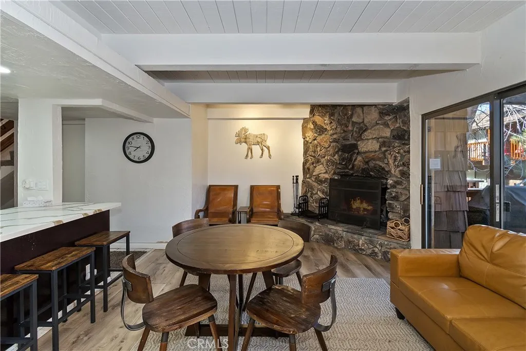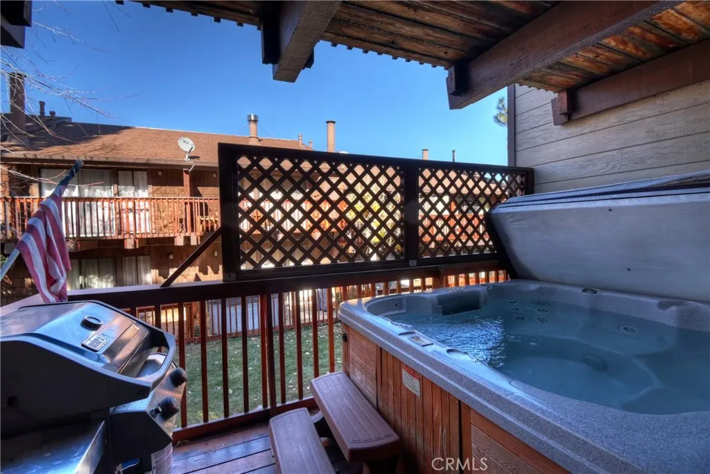 Location, location, location. Just steps from the slopes, this updated mountain getaway perfectly balances modern upgrades with classic cabin charm. Featuring 3 bedrooms, 2 baths, and 1,216 square feet, the home also offers a cozy loft above the primary bedroom, ideal for extra sleeping space or a kids nook. The renovated kitchen shines with quartz countertops and stainless steel appliances, while leather seating, curated cabin dcor, and a native rock fireplace create a warm, inviting atmosphere. After a day on the mountain, unwind in the hot tub or fire up the BBQ for an easy apres-ski retreat. Enjoy year-round fun with close proximity to everything Big Bear has to offer. The HOA covers water, trash, snow removal, WiFi, and exterior maintenance, and residents enjoy community amenities including a summer pool, rec room, sauna, and game room. Whether youre looking for a low-maintenance mountain escape or a strong rental opportunity, this slope-side unit delivers.