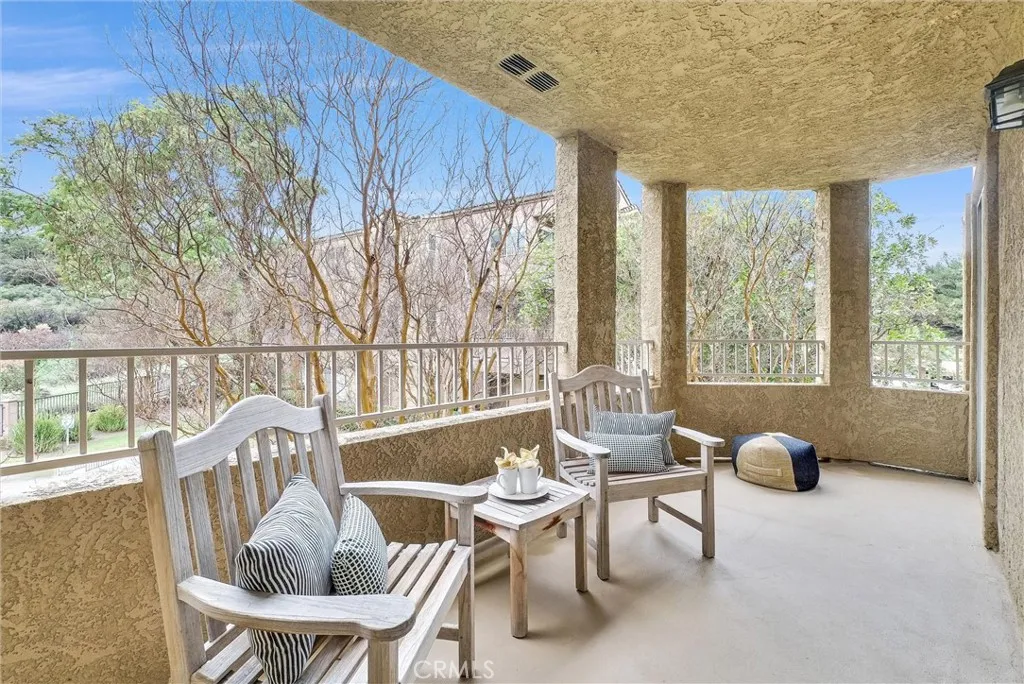 Sage Canyon condo offers 2 bedrooms and 2 baths in a central Corona location! This second-level unit is nothing less than elegance throughout its 995-sq ft layout. ALL APPLIANCES INCLUDED LESS THAN ONE YEAR OLD. Freshly painted neutral tones pair with newly installed cream-colored carpeting to give the single-story, open concept design a bright and inviting feel. Enjoy a seamless flow from the sunlit living room to the cozy and stylish dining area that basks in the glow of a chandelier. Granite countertops with breakfast bar seating, ample cabinetry, and stainless-steel appliances equip the home chef in the adjacent kitchen. Expansive windows spill radiant sunlight across the bedrooms, including one converted into an office with direct outdoor access. Views of your surroundings greet you as you comfort from the primary suite. Rest and relax in the privacy of the bath that treats you to a shower-tub combo. Admire the inspiring treetop vistas from the balcony as you sip your morning coffee or unwind with drinks to cap off the day. Other noteworthy perks include an in-unit laundry room, designated carport and private space parking. Convenience is moments away from your doorstep with the available amenities in the Sage Canyon Condos complex. Enjoy the pool and spa or at the basketball court and don't forget about the gym. Desirably set near the Orange County and Yorba Linda border, youll enjoy easy access to talk-of-the-town attractions, parks, golf courses, schools, shopping, and restaurants. Major commute routes are also nearby. Come for a tour of this beautiful home while yo