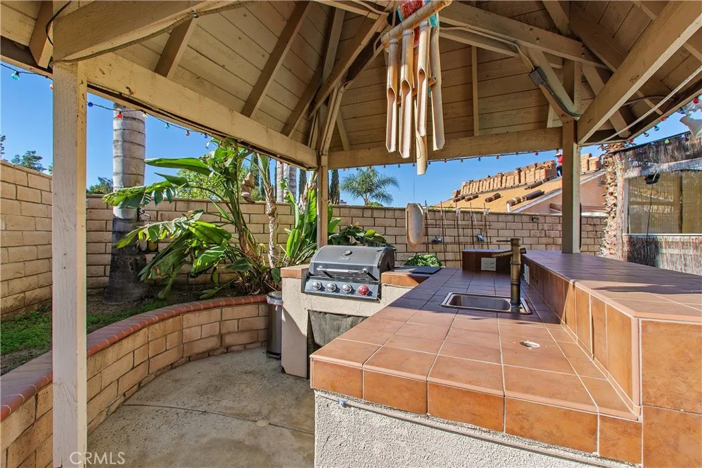 Welcome to this beautifully maintained 4-bedroom, 3-bath home offering a comfortable layout designed for both everyday living and entertaining. Thoughtful design and abundant natural light create a welcoming atmosphere throughout. The well-appointed kitchen features granite countertops and backsplash, ample cabinetry, and a large pantry closet. The layout flows seamlessly into the breakfast nook and family room, where a cozy fireplace adds warmth and charm for cooler evenings. The spacious primary suite offers a peaceful retreat with a soaking tub, separate shower, dual vanities, and serene hillside views. Additional highlights include a dedicated laundry room with convenient access to the 3-car garage. Step outside to enjoy a backyard built for Southern California living, complete with a built-in cabana featuring a sink with running water, BBQ, refrigerator, and a gas fire pitperfect for gatherings and outdoor entertaining. The private outdoor space is completed by a sparkling pool, making this home ideal for relaxing and hosting year-round. Ideally located with easy freeway access, this low-maintenance Wildomar home blends comfort, functionality, and lifestyle.