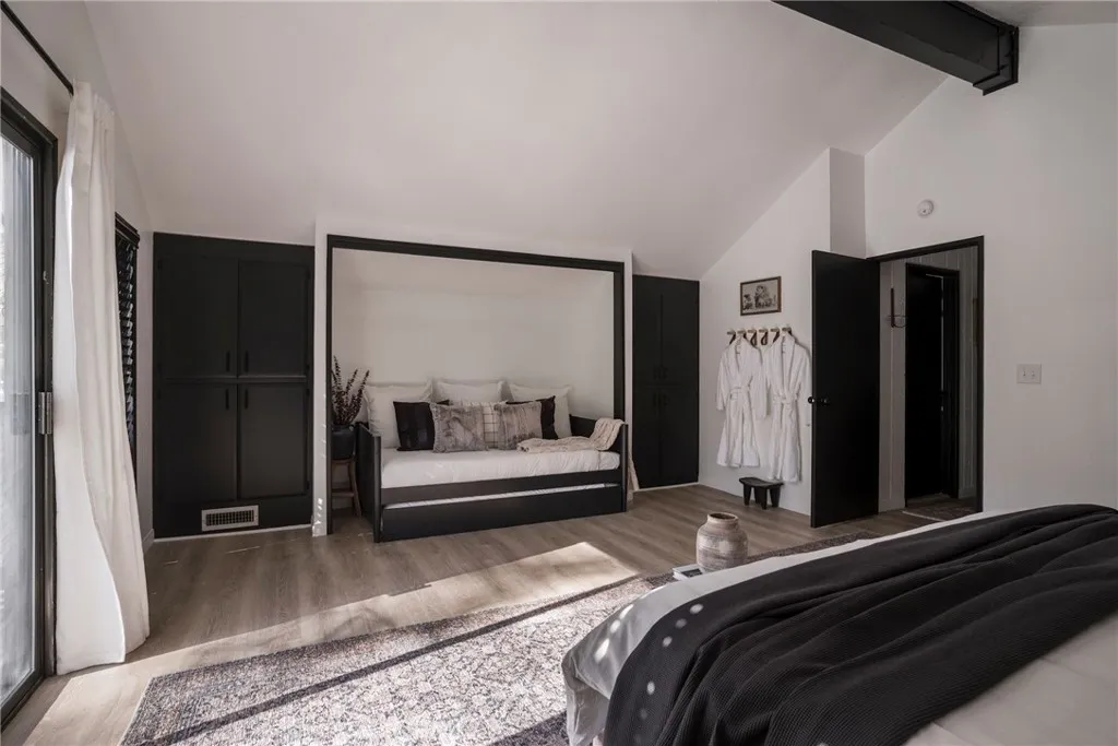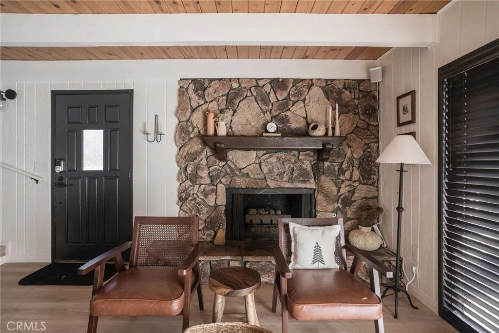 This beautiful Big Bear City home offers the perfect blend of rustic charm and modern convenience and could be just what youve been waiting for! Tucked away in a quiet neighborhood and sitting on a beautiful corner lot, youll find easy access to Big Bear Blvd and the benefit of being located directly across the street from the Maple Lane Trails where you can enjoy the beauty of the mountains, fresh mountain air, scenic forest views, and year-round outdoor adventures right from your doorstep. This charming 3-bedroom, 2-bath home has been thoughtfully remodeled from top to bottom, featuring new paint, flooring, lighting, an updated kitchen, refreshed bathrooms, and striking beamed ceilings that add warmth and character. The layout offers a cozy wood-burning fireplace, separate dining area, laundry, and a spacious 2-car garage. Tastefully decorated and well appointed with all items negotiable, its possible that all you may need to bring is your toothbrush! Whether you are a looking for a primary residence, a second home or an investment property this checks all of the boxes and is an amazing opportunity that you wont want to miss!