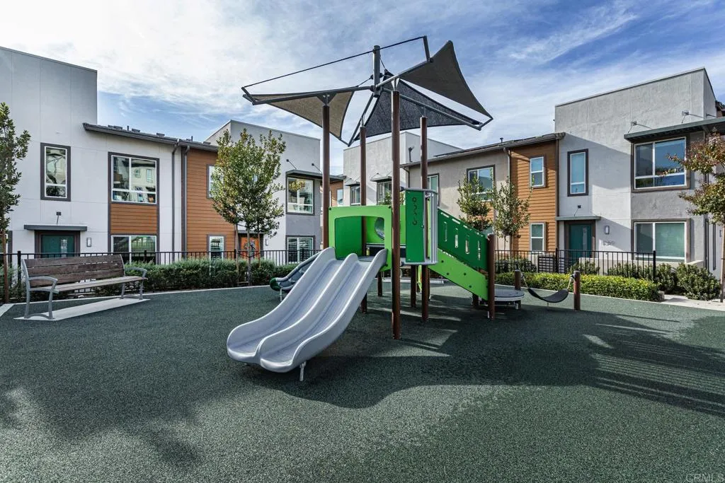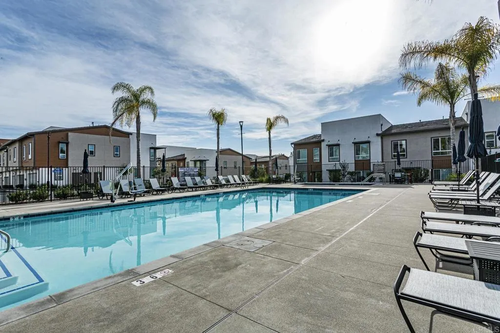 Modern Energy Efficient Townhome in the Soltaire community offers 1 bedroom, 2 bathrooms, a spacious loft, and an attached two-car tandem garage. The property includes owned solar panels, maximizing energy efficiency and reducing utility costs. Upon entering, you are greeted by a full-sized foyer and a staircase leading upstairs. The second floor features an open kitchen with refrigerator included and a great room with direct access to a private balcony, creating a seamless flow for entertaining and everyday living. Laundry with full size washer & dryer included! Upstairs, the primary bedroom includes two walk-in closets, providing ample storage. The third floor is highlighted by a large loft area and a second bathroom, offering flexibility for a home office, guest suite, or entertainment space. The home showcases modern architecture and is situated in the sought-after Solitaire community within the San Marcos School District. Residents enjoy resort-style amenities, including a pool, jacuzzi, clubhouse, two playgrounds, two BBQ/picnic areas, and a dedicated dog park/run. Conveniently located less than a mile from Target, Walmart, LA Fitness, various restaurants, and shops. The community offers easy access to I-78 and is close to Carlsbad beaches, parks, and schools. With an efficient layout, contemporary finishes, and a premium location, this home provides an ideal combination of style, value, and low-maintenance living. Highly recommended for viewing!