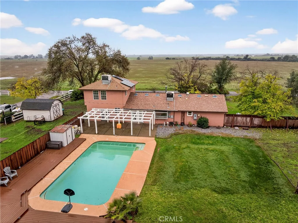 Beautiful 4 bedroom, 2 bath country home on a full 1 acre lot with a brand new 1 year old roof and owned solar with backup battery. The expansive backyard features an in-ground gunite pool and covered patio, perfect for entertaining and family gatherings. Behind privacy fencing, mature citrus trees create a peaceful and secure space for kids, pets and more. The property has 3 sheds with 1 previously being used as an art studio. They offer flexible space for a home office, studio, or workshop. Inside, enjoy a bright open living room with a cozy wood stove, a sun filled kitchen with abundant counter space, sunroom, bonus room, dual cooling systems, whole-house fan, RV parking, and more. A rare country property offering space, comfort, and versatility.