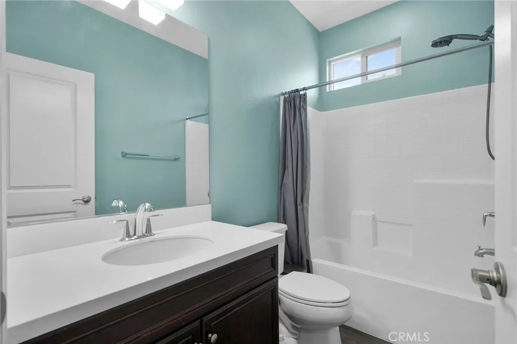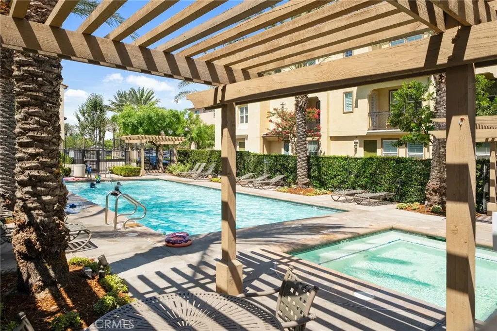 Welcome to this beautifully designed end-unit condo offering privacy, style, and comfort in a gated community setting. Step through the gated courtyard into a light-filled living room adorned with plantation shutters that continue throughout the home, adding timeless elegance. Upstairs, youll find the heart of the home a spacious family room that flows into the dining area and modern kitchen. The kitchen is appointed with granite countertops and matching backsplash, an island perfect for meal prep or casual dining, and direct access to a charming patio balcony ideal for enjoying morning coffee or evening breezes. The third floor features a convenient laundry room and three generously sized bedrooms, including a luxurious primary suite with a ceiling fan, walk-in closet, and a spa-like bathroom complete with dual sinks and a walk-in shower. A second full bathroom with a shower/tub combo serves the additional bedrooms, both of which also offer ceiling fans and plantation shutters for comfort and style. The two-car attached garage provides direct access to the main floor for ease and security. Residents enjoy access to resort-style amenities including a sparkling pool and spa, picnic area with barbecues, and a playground perfect for relaxing or entertaining. This turnkey condo offers the perfect blend of modern living, thoughtful design, and community convenience.