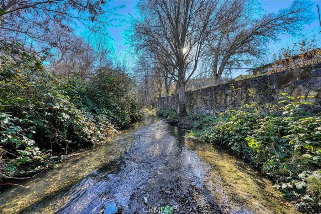 The uniqueness of this 2100+sq ft home is unmatched-a contemporary farmhouse with weathered stone walls that backs up to a year-round creek and lush woods. Everyone will put down their gadgets and go outside to play! First floor features: an open living/dining/kitchen floor plan, 2 bedrooms, 2 baths + a study. Second floor: a full-floor primary bedroom with an en suite bath and space for a nursery, an office, a dressing or TV room. Balcony overlooks back yard and hillside. The outdoor dining and play areas include: a deck, a patio, front and back yards with garden beds awaiting your personal touch. Generous closets and storage throughout. The stone wall along the back perimeter gives old vineyard vibes: it sets the tone for this rustic landscape--perfect for long farm house table dinner parties. Extra 18X30 ft workshop/studio/home gym open to the patio and covered carport. Ample parking: a 23 ft-deep two-car garage, covered carport + an enclosed and gated private driveway for more--RV, boat (or basketball hoop.) The privacy and security of this property is unmatched: enclosed by rustic stone walls, fencing and gates for piece of mind as your dogs play outside. Light bathroom updates and a kitchen refresh could make this a multi-generational forever country home you'll be proud of. Full inspections performed in Dec. Visiting this property will set it apart from all the rest.