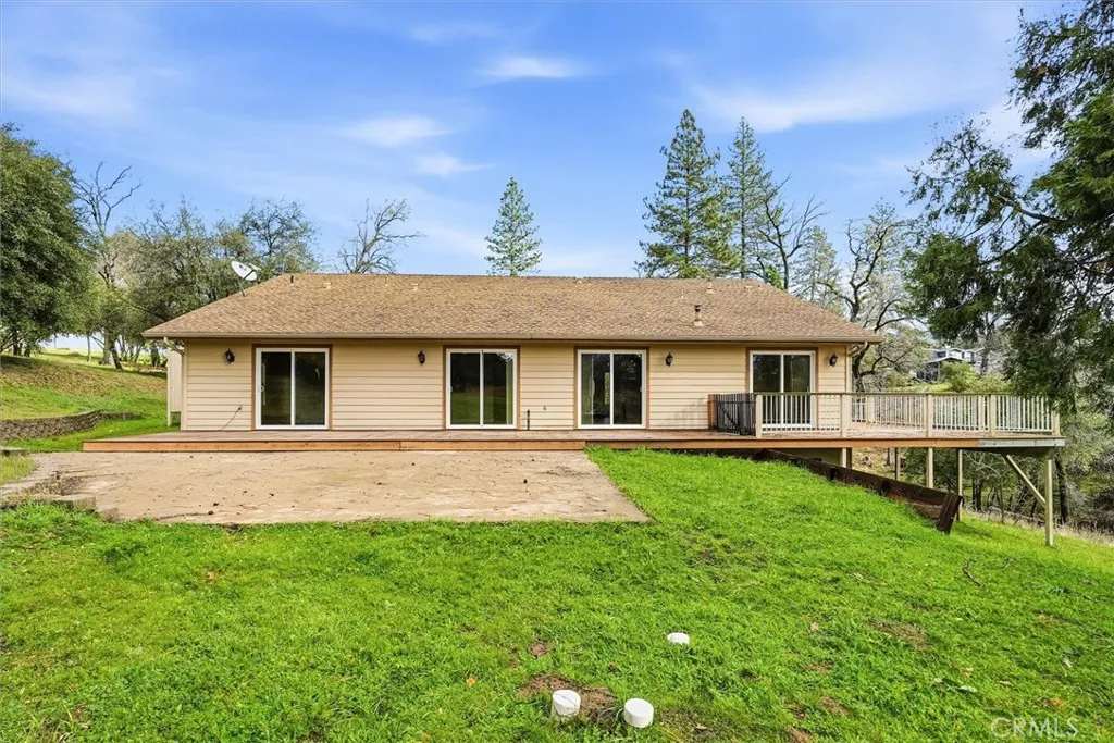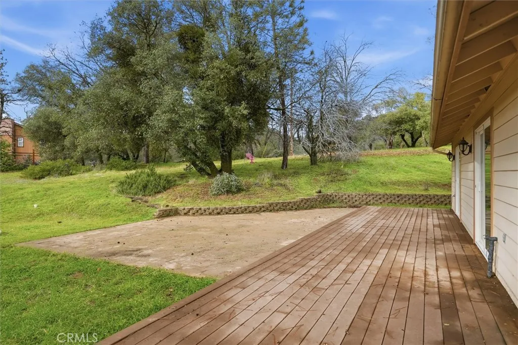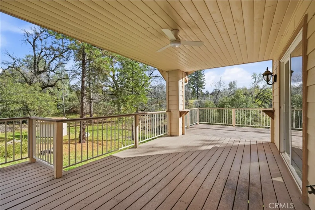 Set on 3.71 scenic acres with a seasonal creek and expansive outdoor living spaces, this custom-built Wishon home offers the perfect blend of comfort, privacy, and mountain lifestyle. The spacious 2,158 sq ft floor plan features an open, airy design highlighted by a beautifully remodeled kitchen with a propane range, large island, breakfast bar, and breakfast nook, all flowing effortlessly into the living area and formal dining space, ideal for gatherings or relaxed everyday living. A private entrance/mudroom and separate laundry room add both function and convenience. The thoughtfully isolated primary suite provides a peaceful retreat with sliding door access to the deck, a generous bathroom featuring a soaking tub, separate shower, dual sinks, and a walk-in closet. Fresh interior paint and newer laminate wood flooring enhance the bright, inviting feel throughout the main living areas and bedrooms. Outdoor living truly shines here with expansive, partially covered Trex decking that wraps around the home and extends to a back patio overlooking the seasonal creek and surrounding natural beauty. The property offers abundant parking, including an extra-deep finished 3 car garage. Ideally located just minutes from Millers Landing, the Bass Lake Dam and launch ramp, this home provides easy access to lake life, outdoor adventure, and nearby Yosemite, an exceptional mountain retreat in every sense.
