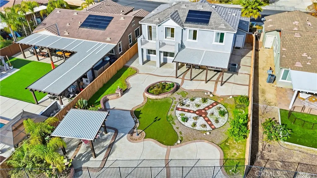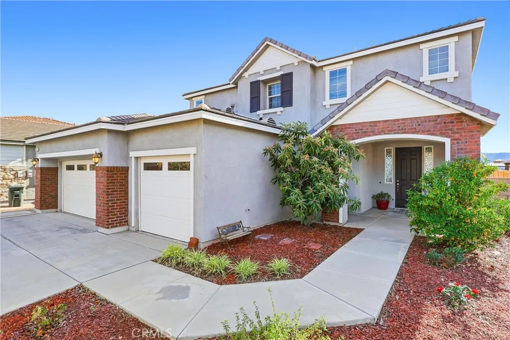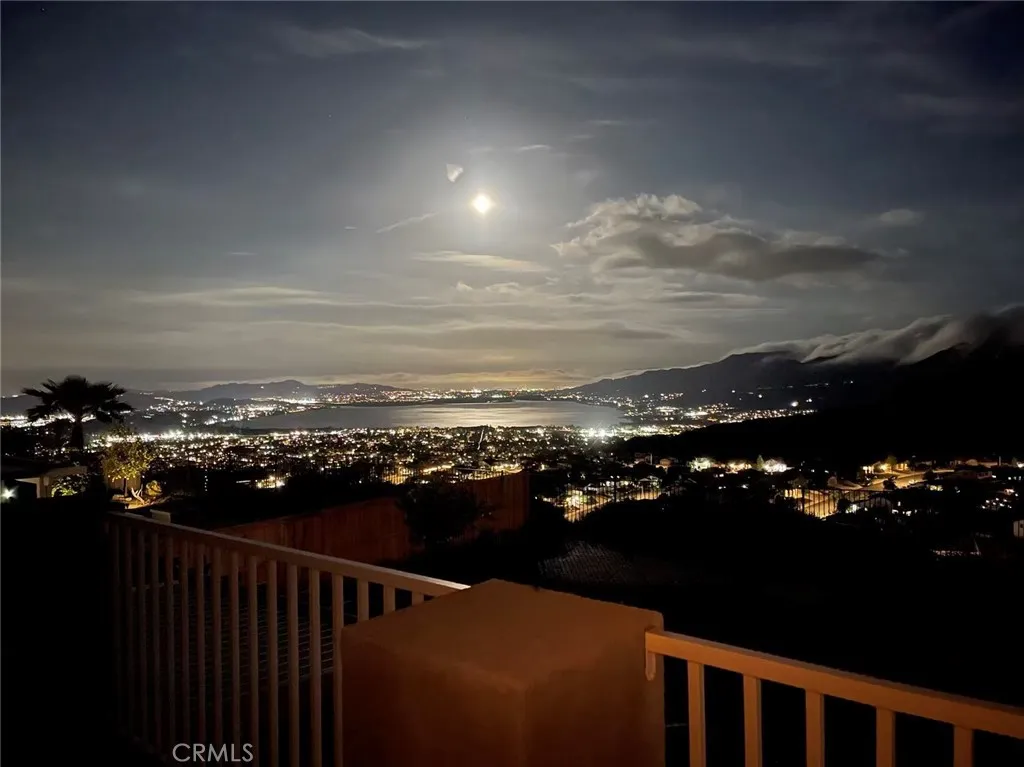 VIEW! VIEW! VIEW! Stunning panoramic views of the lake, city lights, sunrise, sunset, and majestic mountains--you can even see the sun rising above the clouds, hanging over the lake and moonlight shining on the lake! One of the NEWEST homes built in Shore Point HOA, improved with paid solar panels, fire sprinklers, & 9' high ceilings which homes of old phrases do not have. This impressive view home offers 4 bedrooms, 3 baths, plus a loft and a 3 car attached garage. Upon entering, your heart will be lifted up by the light pouring all over the very open living room and family room. The numerous windows allow you to see the gorgeous setting this home offers--from the endless green mountain range to the breathtaking Lake Elsinore! Opening to the breakfast nook and the family room, the gourmet kitchen boasts a huge central island with bar sitting, exotic granite countertops, upgraded nook base cabinets, and stainless steel appliances, including a GE profile stove with 4 burners, a griddle & a warming drawer. Three out of the four bedrooms enjoy amazing views. The primary suite features a view deck and an ensuite bath with a separate shower and tub, dual sinks, and a huge walk-in closet. Need an office, media room, or a work-out gym? The multi-use loft upstairs is ideal for these uses. The 3rd bathroom with a tub is conveniently located next to the kitchen and the individual laundry room. Tile flooring downstairs & in all wet areas. Spacious 3 car garage with epoxy flooring--turning one garage space into a bedroom downstairs was an option the builder offered originally. A fully
