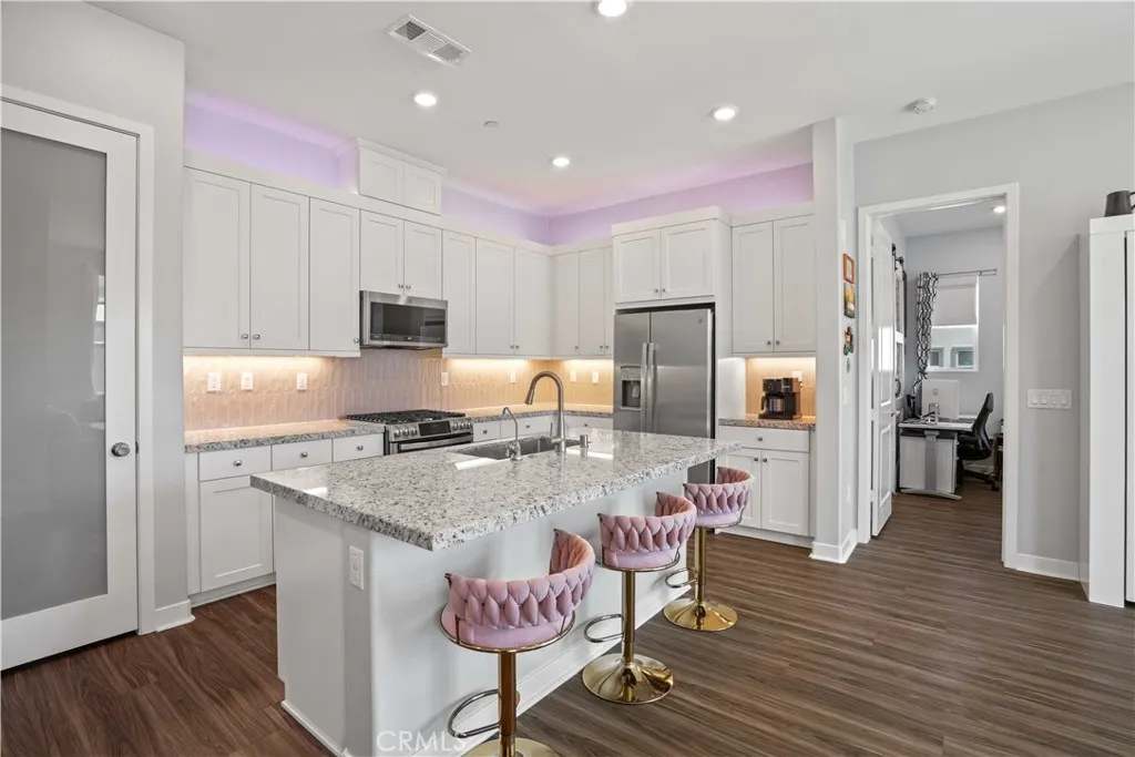 **This Property Qualifies for a Homebuyer Assistance Program of $10,000, which can be used towards closing cost OR a ZERO Down Payment with NO PMI!** Welcome to this FHA APPROVED condo, nestled in the highly sought-after Valencia Five Points Community! Back on the market at no fault to the seller, Buyer could not qualify. Designed with both style and comfort in mind, this pristine home is your perfect retreat. Upon entering, you'll be welcomed by a beautifully open floor plan featuring a spacious living room, a pristine kitchen, and an inviting dining area! With all NEWER appliances included: Washer, Dryer, Refrigerator, Dishwasher, and Microwave -- This home is truly move-in ready! While extras include recessed lighting, in-unit laundry, both bedroom closets feature beautifully made custom cabinetry, an additional storage closet just steps away from your front door, leased solar panels, and a tankless water heater for energy efficiency. This home is also equipped with its own EV charger in the spacious tandem 2 car garage. Most importantly, this condo has been exceptionally maintained and cared for! Youll also enjoy resort-style HOA amenities including: 3 unique swimming pools, Outdoor fire pit with ample seating, Community Center and Garden, Picnic areas, scenic walking trails, dog stations and so much more! Located just minutes from award-winning schools, golf courses, Westfield Mall, Six Flags Magic Mountain, and with easy freeway access. Dont miss out on this opportunityschedule your private showing today!
