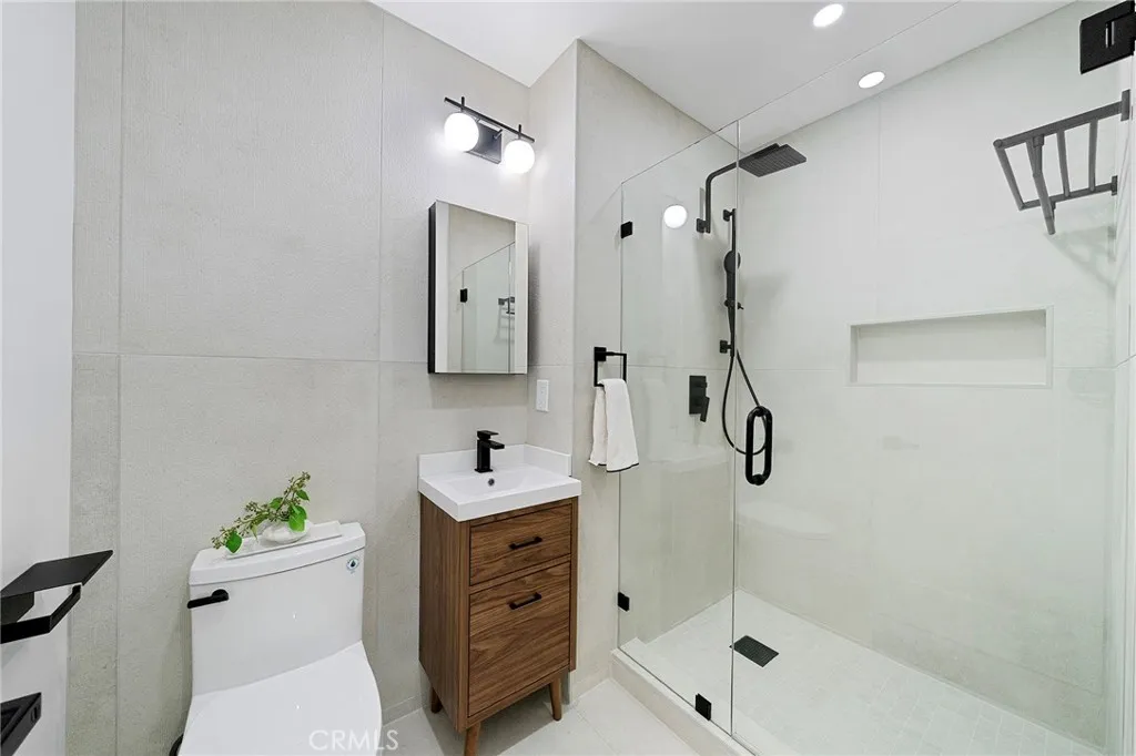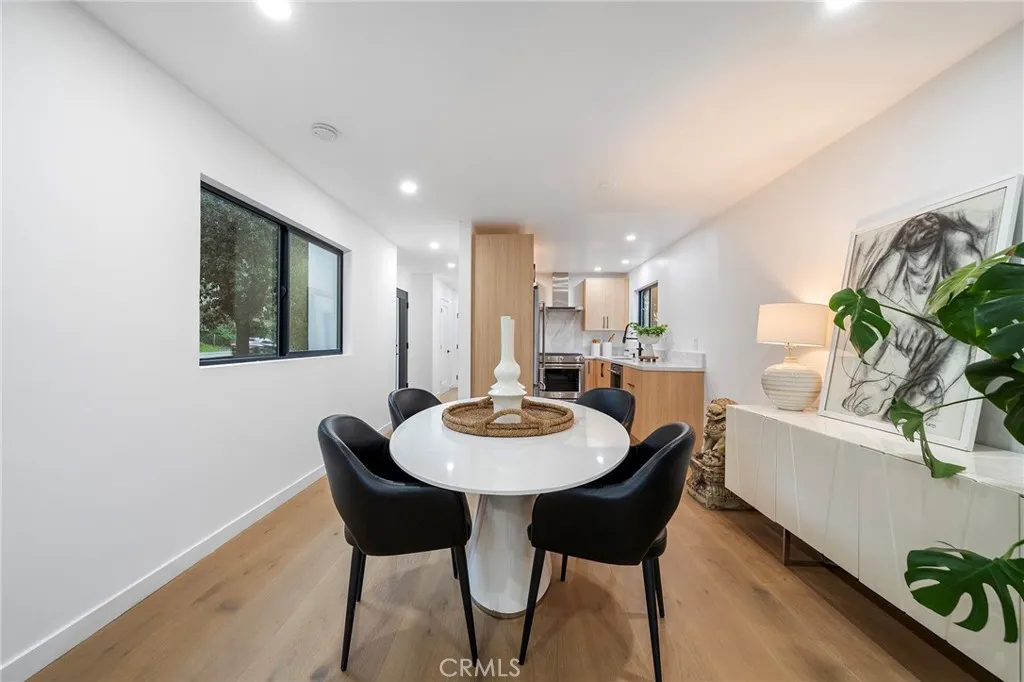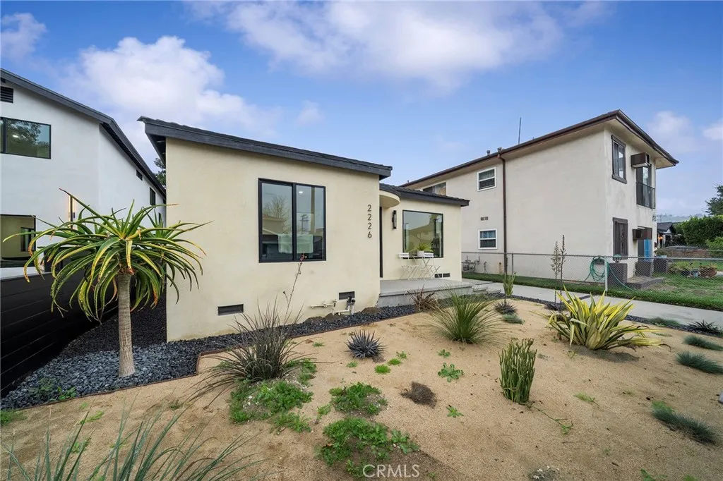 In the heart of Elysian Valley, where modern design meets the creative energy of Frogtown, this rare offering features two fully reimagined residences sold together, yet designed to live entirely independently. Separated by fencing, each home enjoys its own gated driveway, private yard, two-car garage (one of them attached), separate meters, and individual central air systems, offering flexibility with privacy. ~~~~ 2229 Shoredale spans approximately 928 square feet and is infused with a calm, refined aesthetic that includes updated wood flooring, recessed lighting, and black-framed dual-pane windows set a sleek tone throughout. The living room captures morning light through a picture window overlooking drought-tolerant landscaping, with a charming front porch ideal for a bistro table or bench. An elegant dining room with built-in cabinetry with lighting, tray like ceiling, stylish light fixture flows into a beautifully updated kitchen featuring gold-veined quartz countertops, modern cabinetry, and included appliances: refrigerator, gas range, drawer microwave, and dishwasher. ~~~~ A sunlit stackable laundry (also included) area sits just off the kitchen. Two spacious bedrooms include a private rear primary suite. The guest bath offers a separate tub and shower, while the en suite delivers spa-inspired design. ~~~~ Outdoors, a long gated driveway leads to the garage with additional space for entertaining, gardening, or play in the lush green grass where you can ground yourself. ~~~~ 2225 Shoredale mirrors the same thoughtful craftsmanship with a distinct layout and its own