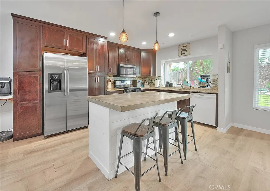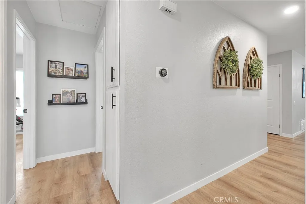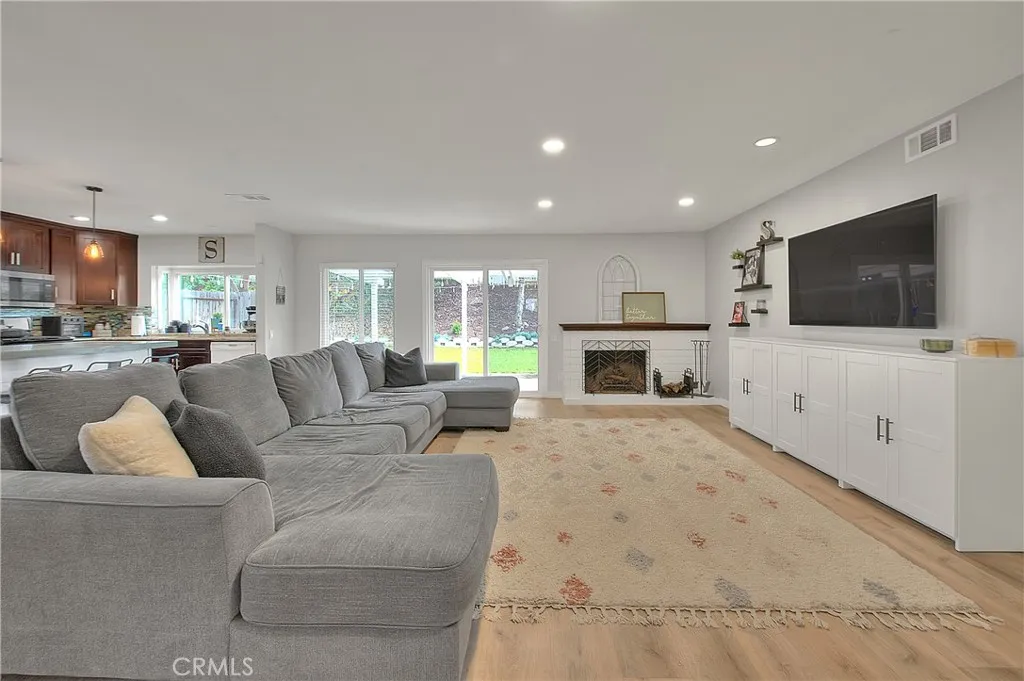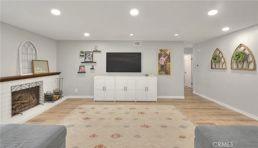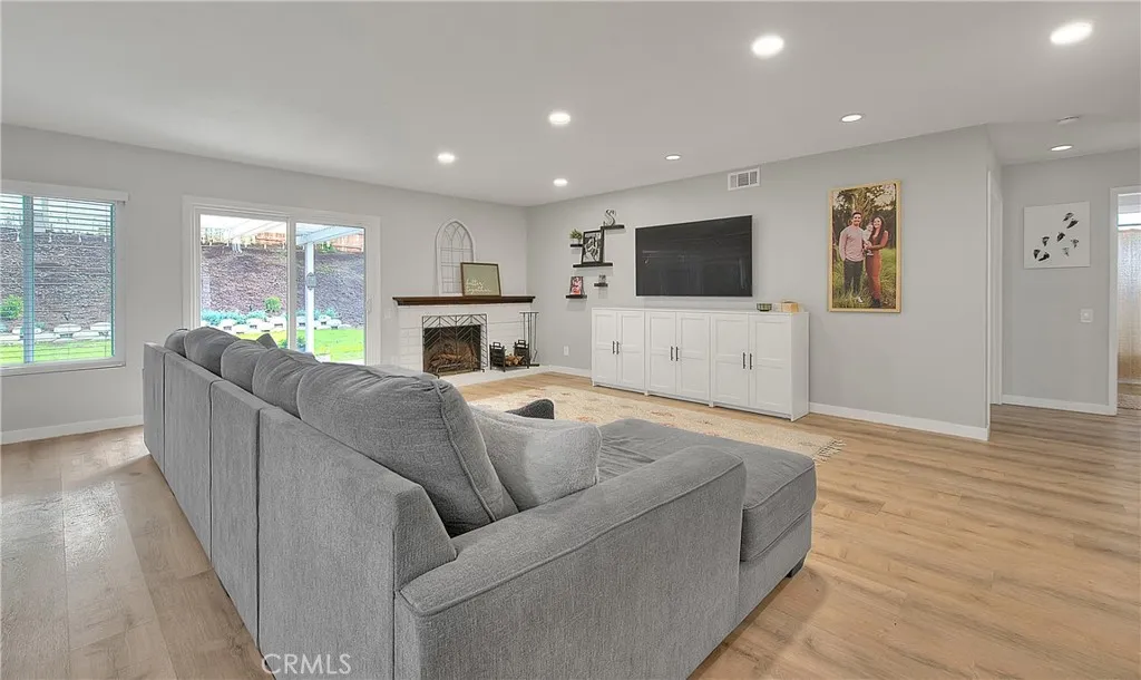 Beautifully upgraded single story home located in the prestigious City of Corona. This meticulously maintained residence offers 1,393 sq ft of living space on an expansive 9,148 sq ft lot, featuring 3 bedrooms, 2 full bathrooms, and a 2 car garage. Enjoy excellent curb appeal with a well manicured front yard, fresh exterior paint, and an extra wide driveway. Step inside to an inviting open floor plan enhanced by new dual pane windows, custom flooring, recessed lighting, upgraded baseboards, and window coverings throughout. The upgraded kitchen is ideal for entertaining and showcases a large center island, granite countertops, ceiling height cabinetry, glass tile backsplash, and ample storage space. The primary suite features upgraded flooring, a ceiling fan, barn door closet doors, a built-in organizer, and custom paint. The primary bathroom offers tile flooring, a custom vanity with granite counters, and a spacious walk-in tile shower. Bedrooms two and three are generously sized and include upgraded flooring, ceiling fans, and window coverings. The guest bathroom is tastefully updated with tile flooring, and a walk-in shower. The living room highlights recessed lighting, a charming brick fireplace, and multiple large windows overlooking the private entertainers backyard, complete with a patio cover, grass area, and space to relax or entertain. Conveniently located near the 15, 60, and 91 freeways, as well as parks, recreation, shopping, dining, entertainment, and schools. This turnkey home is a must see, dont miss the opportunity to make it yours!