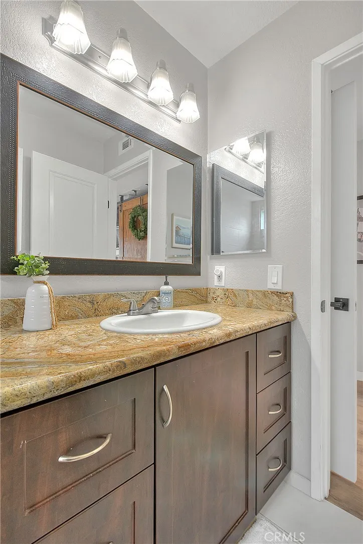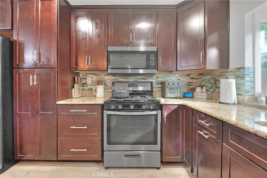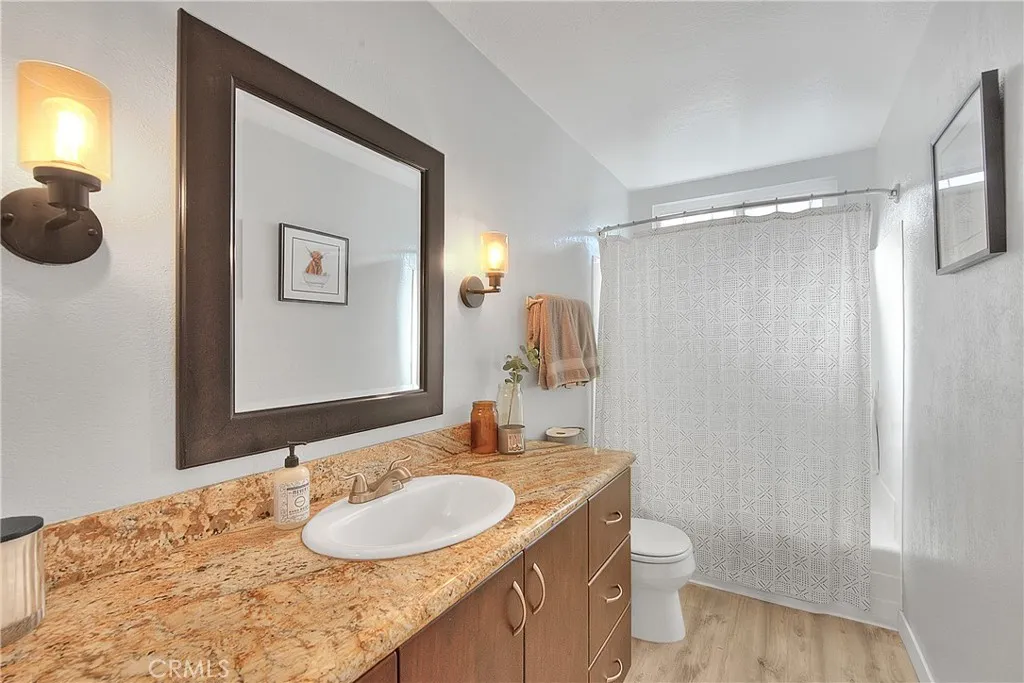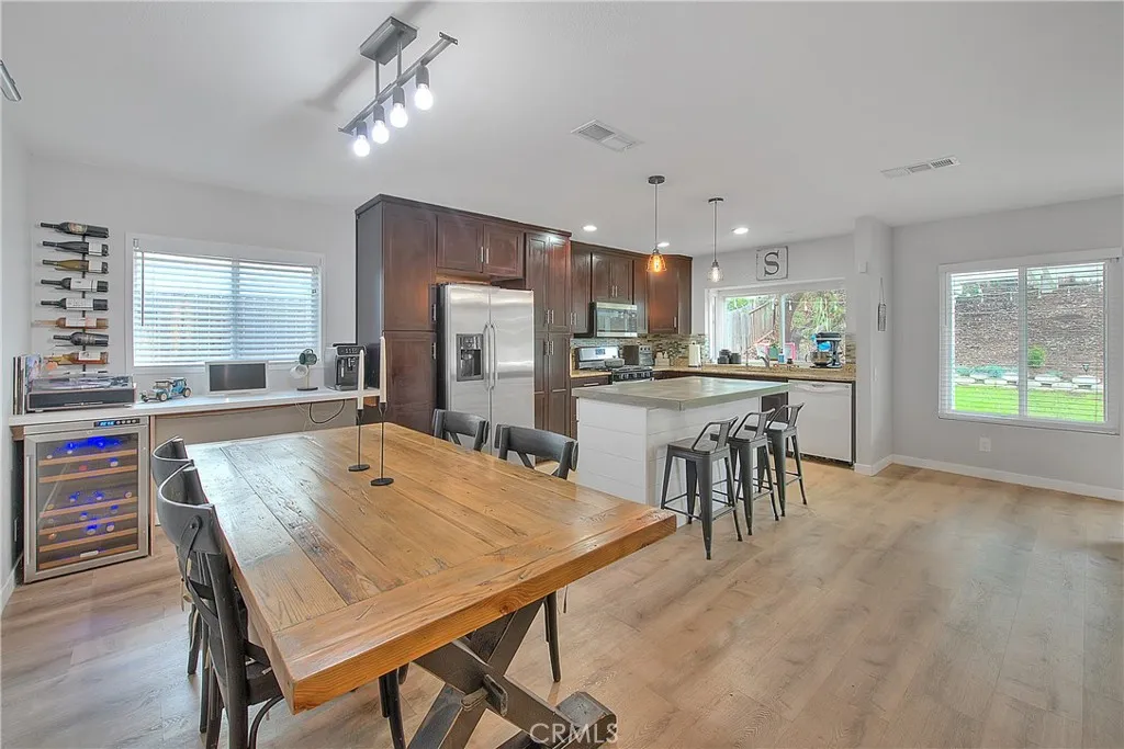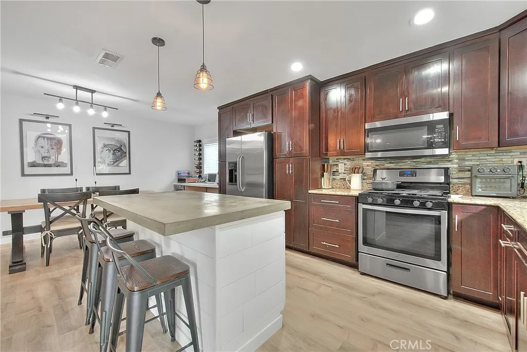 Beautifully upgraded single story home located in the prestigious City of Corona. This meticulously maintained residence offers 1,393 sq ft of living space on an expansive 9,148 sq ft lot, featuring 3 bedrooms, 2 full bathrooms, and a 2 car garage. Enjoy excellent curb appeal with a well manicured front yard, fresh exterior paint, and an extra wide driveway. Step inside to an inviting open floor plan enhanced by new dual pane windows, custom flooring, recessed lighting, upgraded baseboards, and window coverings throughout. The upgraded kitchen is ideal for entertaining and showcases a large center island, granite countertops, ceiling height cabinetry, glass tile backsplash, and ample storage space. The primary suite features upgraded flooring, a ceiling fan, barn door closet doors, a built-in organizer, and custom paint. The primary bathroom offers tile flooring, a custom vanity with granite counters, and a spacious walk-in tile shower. Bedrooms two and three are generously sized and include upgraded flooring, ceiling fans, and window coverings. The guest bathroom is tastefully updated with tile flooring, and a walk-in shower. The living room highlights recessed lighting, a charming brick fireplace, and multiple large windows overlooking the private entertainers backyard, complete with a patio cover, grass area, and space to relax or entertain. Conveniently located near the 15, 60, and 91 freeways, as well as parks, recreation, shopping, dining, entertainment, and schools. This turnkey home is a must see, dont miss the opportunity to make it yours!
