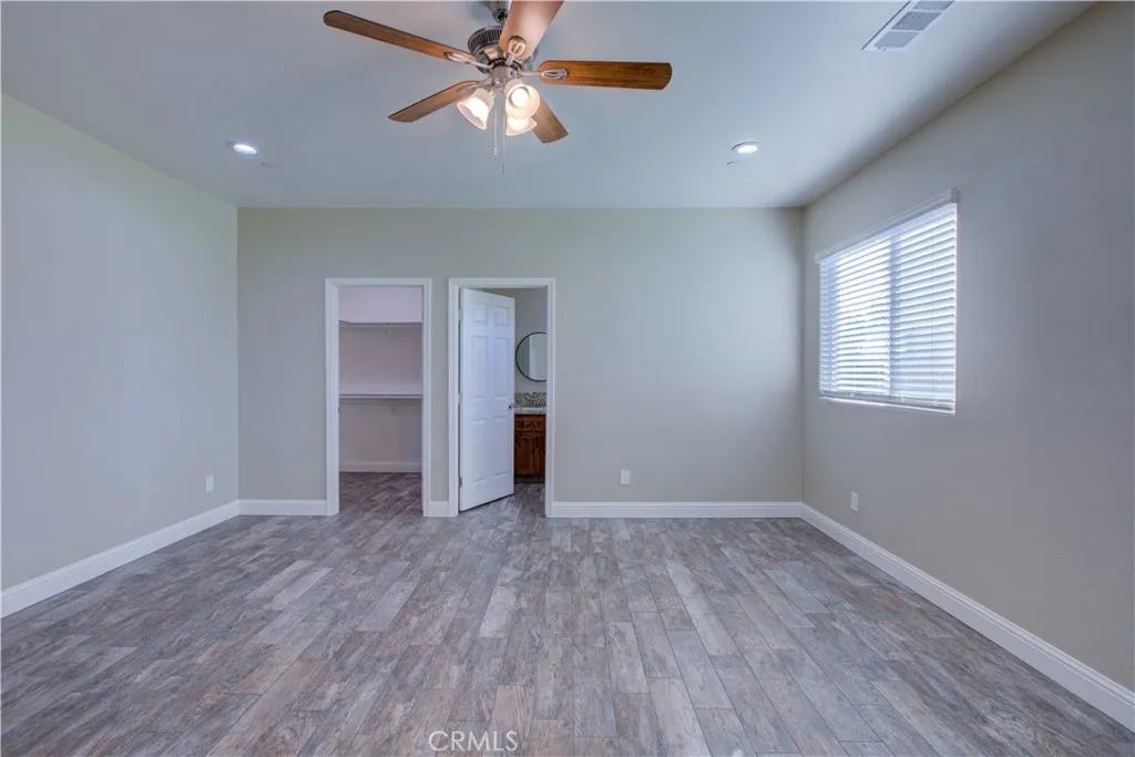 Beautifully designed 3,072 sq ft single-story home on a 1.17-acre lot featuring two primary bedrooms, each with a walk-in closet and private bath ideal for multi-generational living. Enter through double doors into a stunning foyer highlighted by a decorative entry medallion. The chef's kitchen offers granite countertops, custom cabinetry with abundant storage, tile flooring, 7-burner gas cooktop with pot filler, double ovens, walk-in pantry, and a large island perfect for entertaining. Granite finishes continue in the bathrooms. Additional features include a laundry room, dual-pane windows, and a 3-car side-entry garage with half bath. The property provides two access points to the backyard, side RV/boat parking, a large patio, and a storage shed. Front landscaping includes five young olive trees (just over a year old), with an almond tree near the garage. The expansive backyard is an open canvas for a pool, garden or outdoor kitchen.