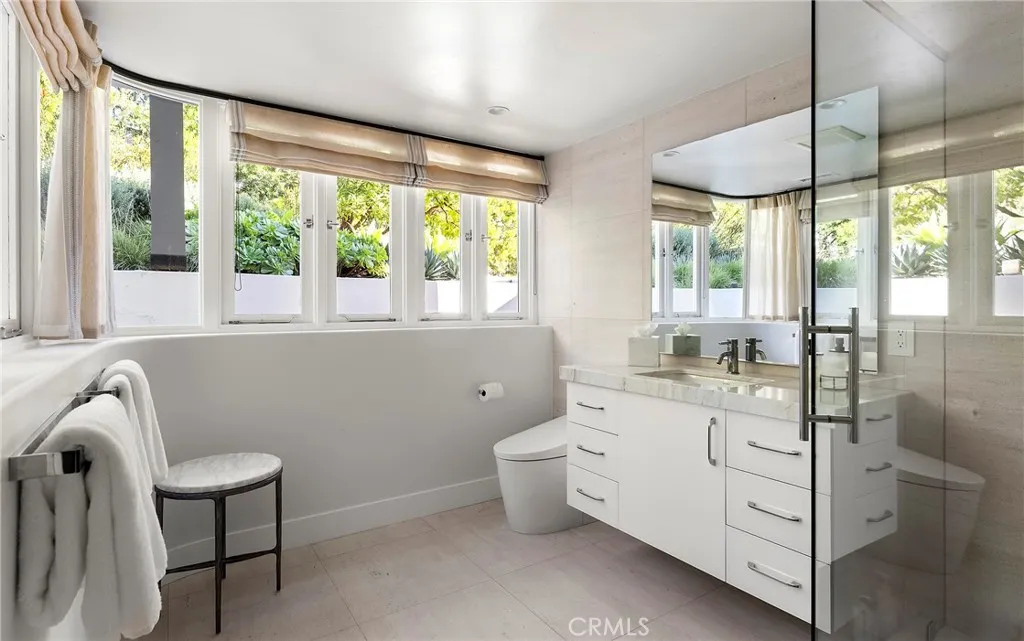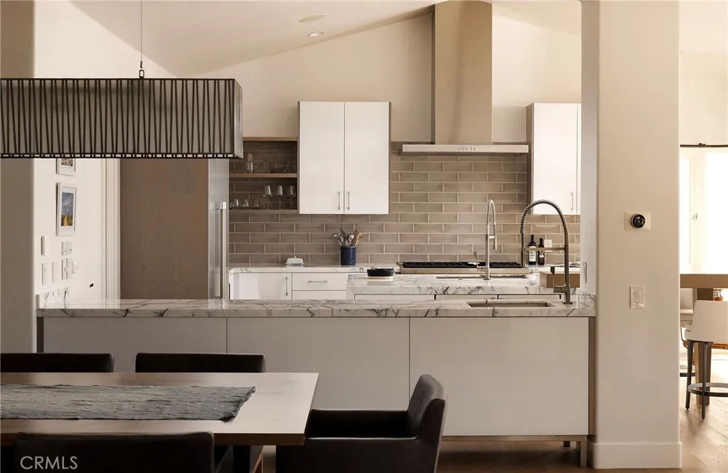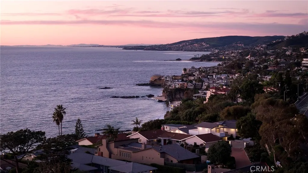 Sited at the very end of North Portola, this custom home sits at the end of a shared drive which leads to a large privately gated paver-lined motor-court. A large steel and glass entry door opens towards the ocean, offering a substantial view of The Pacific upon entry. A great room with soaring ceilings is lined with bleached oak flooring across the open concept living spaces with some of the very best views in Lower Three Arch Bay from nearly everywhere in the home. A chefs kitchen offers an oversized kitchen island with large built-in breakfast area, natural stone countertops, a stainless steel appliance suite with six burner stove, a walk-in pantry, an ice maker, and dramatic vistas up the coastline. Two of the four bedroom suites are on the main level, each offering a private bathroom. One of the two offers ocean views and separate access from a private patio with waterfall fountain. Two additional bedrooms are located on the second level, each accessed by separate private stairways. The primary suite includes a view terrace as well as a spa-like bathroom with a freestanding soaking tub illuminated by an overhead skylight, a walk-in shower, and a large walk-in closet. A secondary private suite accessed by a window-lined architectural stairway offers two separate terraces, including one with ocean views, as well as a walk-in closet. A Pebbletec pool & spa with limestone tiled pool deck on the view-side of the home offers outstanding sun exposure and has unmatched views of the Laguna Beach Coastline, Catalina Island, year-round sunsets, and beyond.