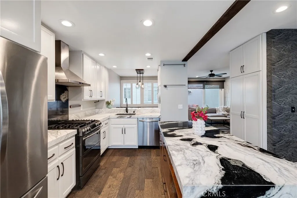 Welcome to your coastal retreat at 501 Herondo Street #50, an extensively renovated townhome just blocks from the sand in the heart of Hermosa Beach. Nestled west of PCH in the highly desirable Moorings community, this light-filled residence offers its own private front-door entry on the quiet cul-de-sac of Hill Street creating a rare sense of privacy and neighborhood charm that only a true beach-close address can offer. Designed for effortless beach living, this 3-bedroom plus bonus room, 3-bathroom home blends modern upgrades, abundant storage, and a functional layout ideal for both everyday living and entertaining. The bright and airy living room features hardwood floors, a cozy fireplace, and updated sliding doors that fill the space with ocean breezes and open to a sunny patioperfect for morning coffee or evening relaxation. Newer windows and coverings throughout the home invite natural light at every turn while enhancing energy efficiency and comfort. The updated kitchen is a chef's delight, complete with marble countertops, a center island with seating, stainless steel appliances, custom cabinetry, and a built-in pantry. Upstairs, the spacious primary suite offers a walk-in closet with custom built-ins and a beautifully updated en-suite bath. Two additional bedrooms and a full bathroom provide flexibility for guests, a home office, or a growing family. A standout feature is the versatile downstairs bonus room, located off the two-car garage with laundry ideal for a home gym, office, playroom, or extra storage. Just moments from The Strand, the beach, and the greenbel