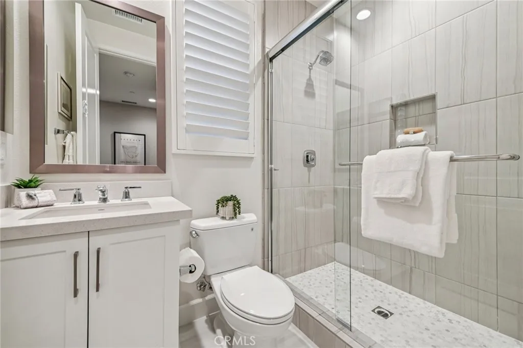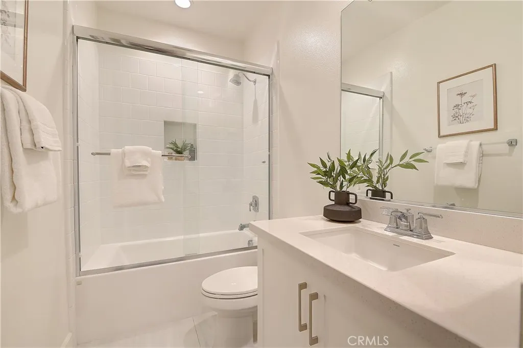 Modern luxury living awaits in the exclusive gated community of Gardenia. This meticulously upgraded home features four spacious bedrooms, including one downstairs, and four full baths, blending sophistication, comfort, and smart technology. A versatile second-floor bonus room is ideal for a home theater, office, or playroom. Hardwood flooring flows throughout the main level and bonus room, creating timeless appeal. The gourmet kitchen impresses with a built-in refrigerator, upgraded soft-close cabinetry, quartz countertops and backsplash, plus under-cabinet outlets and lighting. Built-in surround sound with outdoor speakers and an Onkyo receiver enhance entertaining. The living room showcases a high-end gas fireplace within an open-concept layout. The primary suite offers a peaceful retreat with a beautifully upgraded bath featuring marble flooring, a glass-enclosed designer shower, and an LED speaker fan light. Additional bathrooms feature refined finishes, while a large laundry room with washer and dryer adds convenience. Smart home and energy-efficient upgrades include Alexa-controlled lighting and blinds, Eero mesh Wi-Fi, Fiber internet, Ring cameras, a whole-house fan, split AC, water filtration systems, and EV charging. The epoxy-coated garage adds storage and style. The private backyard is designed for entertaining with upgraded landscaping, artificial grass, pergola, bistro lighting, mounted TV, and permanent perimeter lighting. Close to the community park, playground, and BBQ area, this home offers elevated California living.