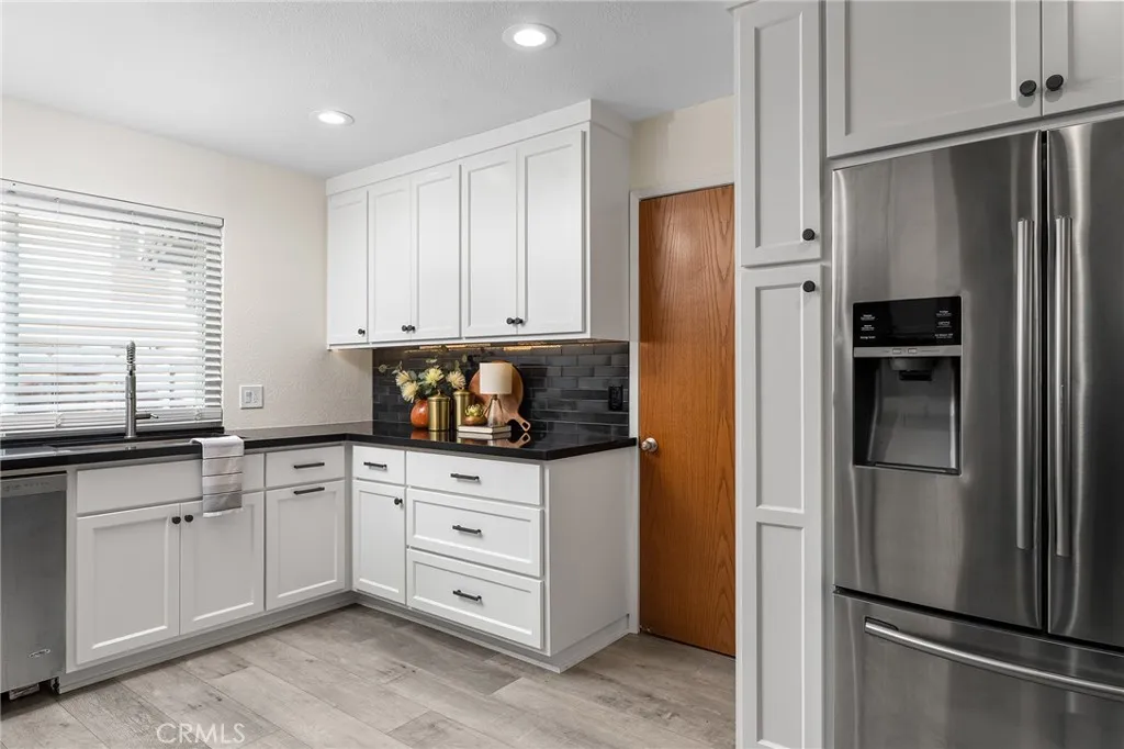 Welcome to 33 Quista Drive, a truly special North Chico home where mid-century charm meets modern design, effortless entertaining, and owned solar for energy efficiency. From the moment you arrive, the curb appeal pulls you in, clean lines, architectural interest, and a timeless look that sets this home apart. Before even stepping inside, youre greeted by a serene courtyard-style entry with a garden space that creates a calming transition from the outside world. Inside, the home opens into a stunning, light-filled layout designed for gathering, hosting, and everyday living. The dining area flows seamlessly into a sunken living room, while an elevated den-style nook overlooks the space, creating a cozy retreat perfect for reading or unwinding beside the electric fireplace insert. Two large sliders frame the living space, drawing your eye outdoors and reinforcing the homes incredible indoor-outdoor connection. At the heart of it all is the showstopping kitchen, beautifully remodeled with white flat-front cabinetry, bold black quartz countertops, brushed black onyx hardware, and stainless steel appliances. A pass-through window with bar seating makes entertaining effortless, while an impressive wall of built-in cabinetry nearby offers incredible storage for games, serving pieces, and everything in between. The bedroom layout offers thoughtful separation and comfort. The primary suite is a true retreat, featuring a spacious bedroom and a stunning en-suite bath with dual sinks set into quartz countertops, a jetted soaking tub, and a dual-head shower with rainfall feature. Just o