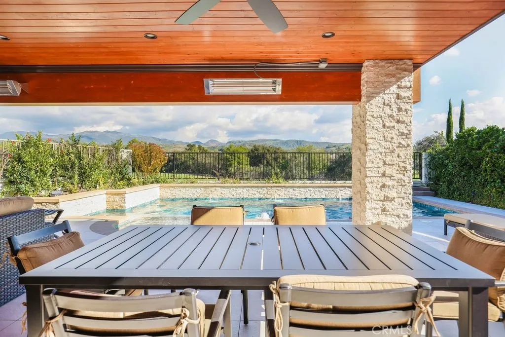 Located in the exclusive, gate-guarded community of Coto de Caza, this beautifully appointed 2,400-square-foot home offers 3 bedrooms, 3 bathrooms, and an ideal LOFT currently used as a home officeperfect as a playroom, workspace, or easily convertible to a FOURTH BEDROOM. Inviting curb appeal welcomes you into a light-filled, open floor plan featuring formal living and dining room designed for both everyday comfort and elegant entertaining. The spacious kitchen showcases warm cabinetry, granite countertops, and a cozy breakfast nook with French door leading to the outdoor dining area and garden. Picturesque windows frame views of the sparkling pool, spa, and surrounding mountains. The adjoining family room continues the warmth of this home to enjoy everyday living. The extended living space outside is right out of a magazine. Well thought out with spacious living area and impressive fireplace. Conveniently located downstairs is an interior laundry room just off the garage entry. The expansive primary suite features a beautiful bath with dual sinks and a walk-in closet. French doors open to an oversized balcony with breathtaking views of the golf course and the Saddleback Mountains. Two additional bedrooms share a Jack-and-Jill bathroom. The resort-style backyard is an entertainers dream, complete with a pool, spa, outdoor family room, and built-in BBQ. The views and backyard in this home will take your breath away. Ideally situated on the 5th hole of the North Golf Course, this exceptional home offers privacy, views, and the ultimate Coto de Caza lifestyle. Enjoy alll the