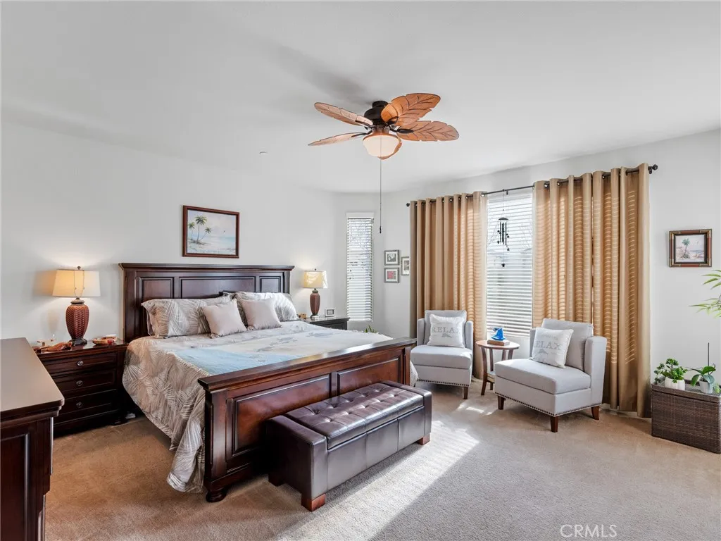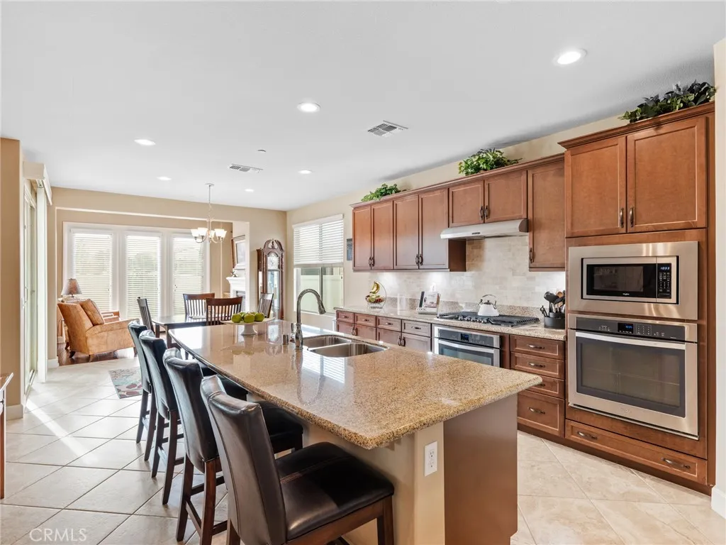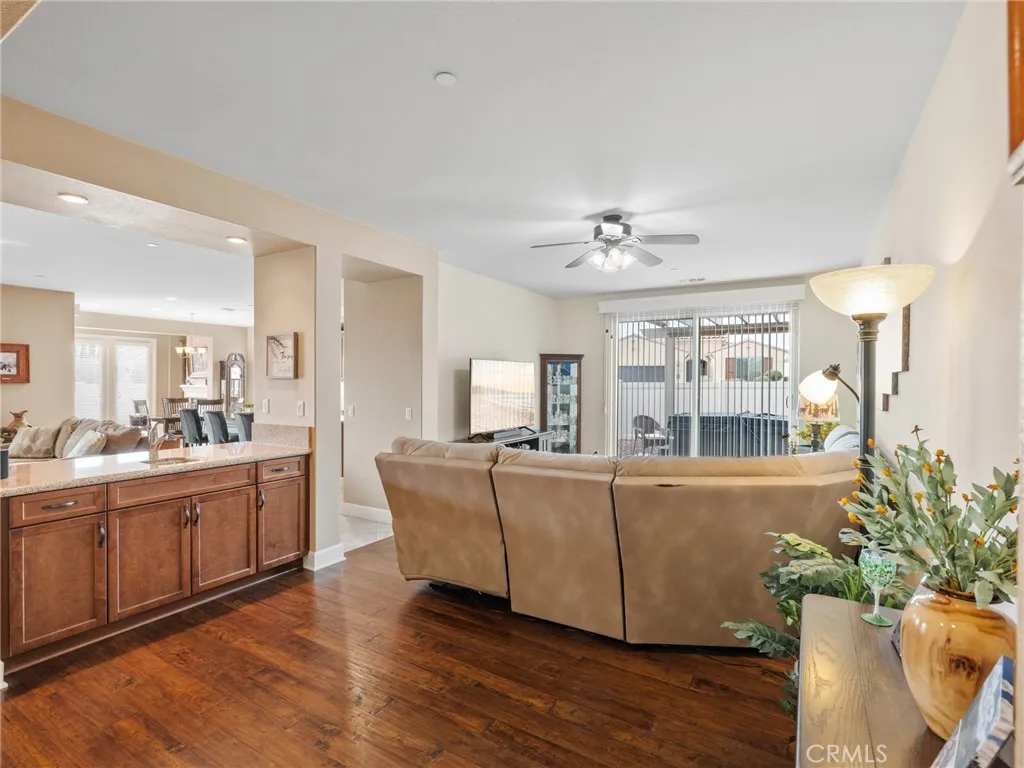 Elevated 55+ Lifestyle | Gathering Model | Paid Solar | One of Sun Citys Larger Lots. Set on one of the larger corner lots within the desirable 55+ gated community of Sun City, Apple Valley, this thoughtfully designed Gathering Model offers 3 bedrooms, 3 bathrooms, and 2,569 sq ft of well-appointed living space. Known within the community for its unique placement, the home is often referred to as being on an island, thanks to its corner-lot positioning with no shared fencing on surrounding sides, creating a rare sense of privacy and openness. Inside, high ceilings and abundant natural light enhance the homes open and inviting layout. The kitchen serves as the heart of the home, featuring a center island open to the living room, double ovens, built-in microwave, stovetop range, walk-in pantry, and extensive cabinetryperfect for both everyday living and entertaining. Just beyond, the living areas are complemented by a warm hearth room with fireplace, ideal as a cozy library, reading space, or quiet retreat. A wet bar connects the living room to the formal dining room, currently used as a den, offering flexibility for entertaining, hobbies, or additional living space. The spacious primary suite provides a private retreat, while a mini suite located near the front of the home offers comfort and privacy for guests. Flooring includes hardwood and tile throughout the main living areas, with carpeted bedrooms for added comfort. Step outside to the pergola-covered patio off the den, where a hot tub creates an inviting space to relax and unwind. The fully landscaped yard is designed