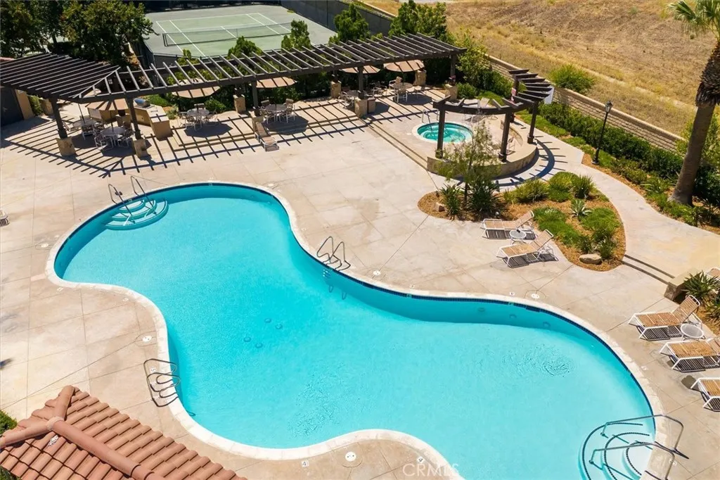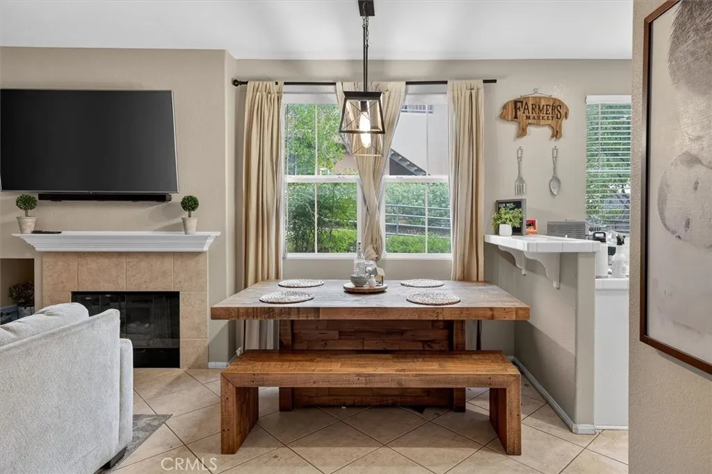 Welcome to this highly sought-after Heather Ridge residence, offering two bedrooms and two bathrooms in a beautifully maintained community. This desirable lower-level corner unit is filled with natural light and framed by serene nature views from every window. Enter through your own private covered porch into the living area, perfect for both everyday living and entertaining. The living room features a cozy fireplace and flows seamlessly into the dining area and well-appointed kitchen, creating an open-concept layout. The living room also has access to your own private covered patio, perfect for relaxing or enjoying the surrounding nature. The primary suite is a true retreat, featuring a large walk-in closet and an en-suite bathroom with double sinks. The guest bedroom and full guest bath are positioned on the opposite side of the home, offering privacy for visitors or a home office. Direct access from the two-car garage leads into the laundry room, providing convenience for daily living. Community amenities include a large swimming pool, spa/hot tub, barbecue area, tennis courts, and basketball courtsideal for enjoying an active and social lifestyle. Conveniently located near shopping, popular restaurants, and easy access to the 14 freeway. This home offers the perfect blend of comfort, elegance, and location.